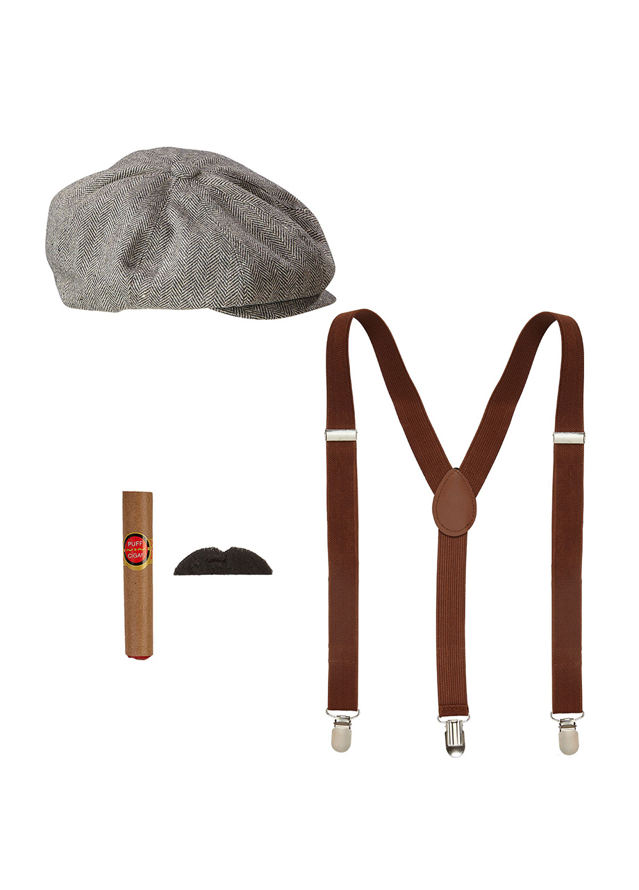 Szukasz dodatków, które przeniosą Cię w klimat eleganckich lat 30.? Ten zestaw inspirowany modą retro pozwala w prosty sposób stworzyć stylizację z charakterem. Klasyczne elementy, takie jak kaszkiet, szelki i detale stylizacyjne, tworzą spójny i wyrazisty look. To idealne rozwiązanie na imprezy tematyczne jako Akcesoria retro LATA 30.