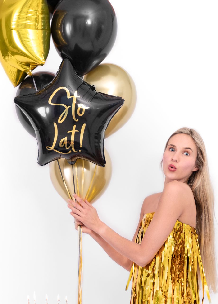 Balon foliowy z napisem STO LAT!. Balon urodzinowy w kształcie gwiazdy, będzie idealnym dodatkiem do prezentu urodzinowego. Balon doskonale wygląda sam lub w grupie, tworząc piękny bukiet balonów, idealny do wręczenia jubilatowi zamiast kwiatów.