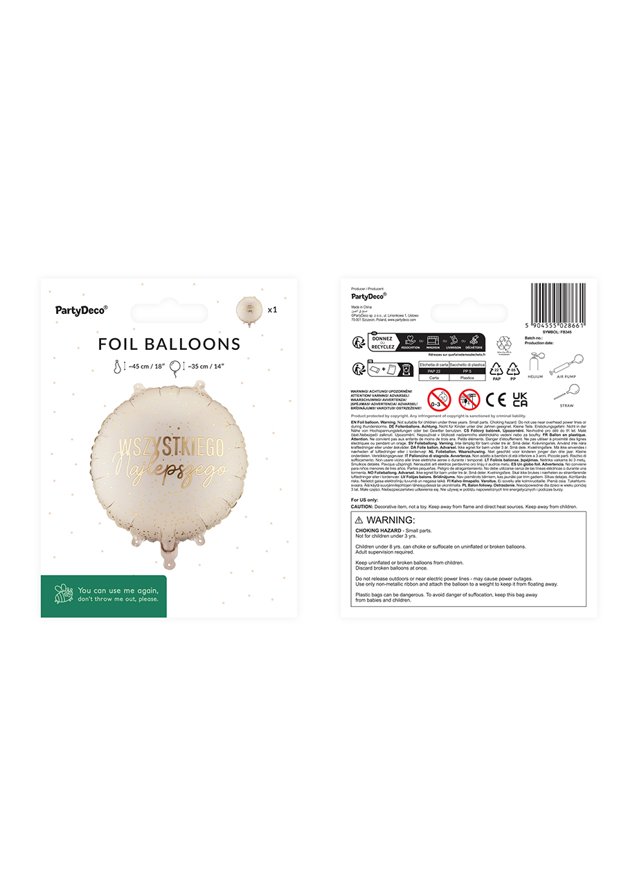 To dekoracja, która w prosty sposób buduje atmosferę świętowania. Delikatna kolorystyka sprawia, że balon nie dominuje przestrzeni, lecz elegancko ją uzupełnia. Doskonale sprawdzi się jako centralny element aranżacji lub część większej kompozycji balonowej. Jeśli zależy Ci na stylowej i uniwersalnej ozdobie, Balon beżowy będzie doskonałym wyborem na wiele okazji.