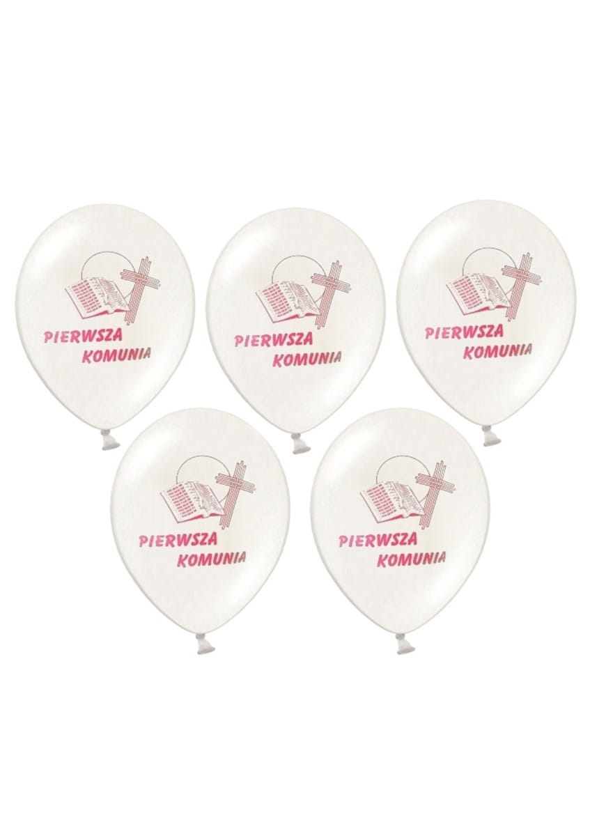 Balon KOMUNIA ŚWIĘTA biało-różowy balon na komunię