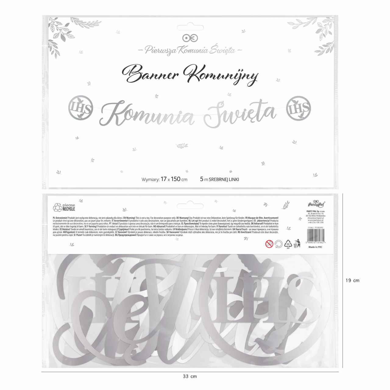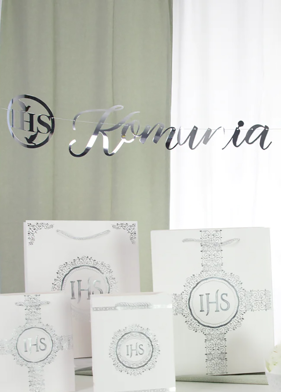 Delikatnie zdobiony baner na komunię doda uroku i wyjątkowego charakteru uroczystości przyjęcia pierwszej komunii Twojego dziecka. Baner na komunię to idealny sposób na udekorowanie kościoła, domu czy sali restauracji. Można go z łatwością zawiesić w dowolnym miejscu. Ten wyjątkowy baner na komunię w połączeniu z innymi elementami dekoracji z tej samej kolekcji stworzy niesamowicie piękny i elegancki wystrój.