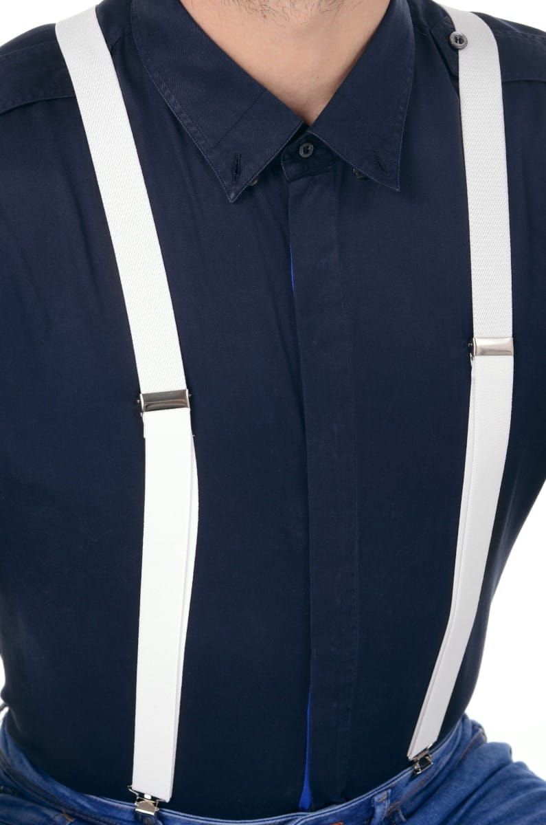 Regulowane białe szelki męskie to szybki i skuteczny sposób na podkreślenie charakteryzacji i nadanie postaci wyrazistego wydźwięku. Biel idealnie komponuje się z czernią lub granatem. Zapinane na klasyczne metalowe żabki szelki to gwarancja 100% wygody i komfortu podczas noszenia. Czarna elegancka koszula z białym dodatkiem z pewnością przykuje uwagę niejednej pięknej damy. Co ważne, szelki lata 20 to uniwersalny element garderoby, który możesz wykorzystać do wielu stylizacji imprezowych. Zaszalej z charakteryzacją i swoim wizerunkiem. Zrób wielkie wejście na party i pokaż współczesnemu światu, jak się bawią prawdziwi mężczyźni mafii.