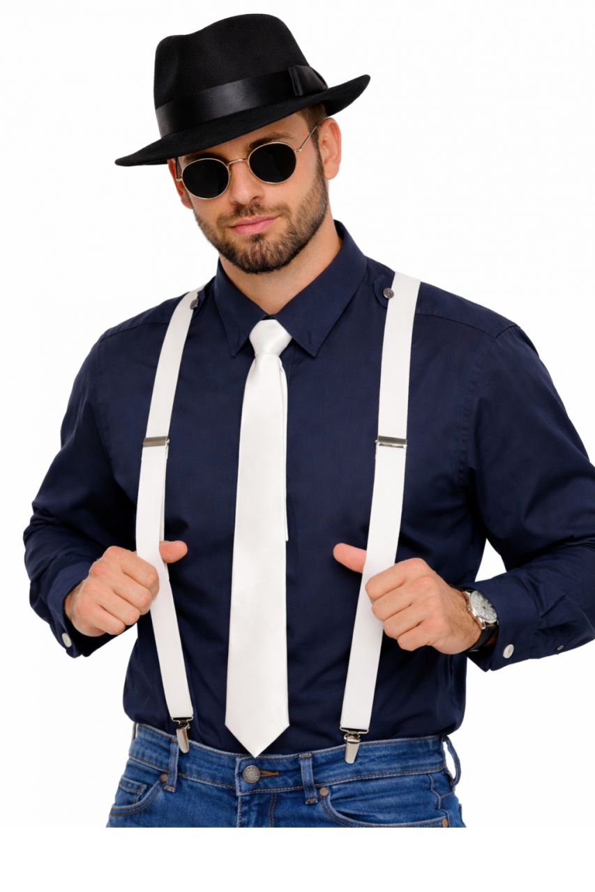 Moda w świecie gangsterskim w latach 20. rządziła się swoimi prawami. Żadne tam dresy i luźny styl. Prawdziwy mężczyzna ze spluwą ukrytą pod marynarką musiał być elegancki i gustowny. Białe szelki to jeden z tych akcentów garderoby, których nie może absolutnie zabraknąć w całym zestawieniu. Jeśli zatem na tegorocznej karnawałowej zabawie postanowiłeś pojawić się w eleganckiej stylówce, to koniecznie zadbaj o detale kostiumu.