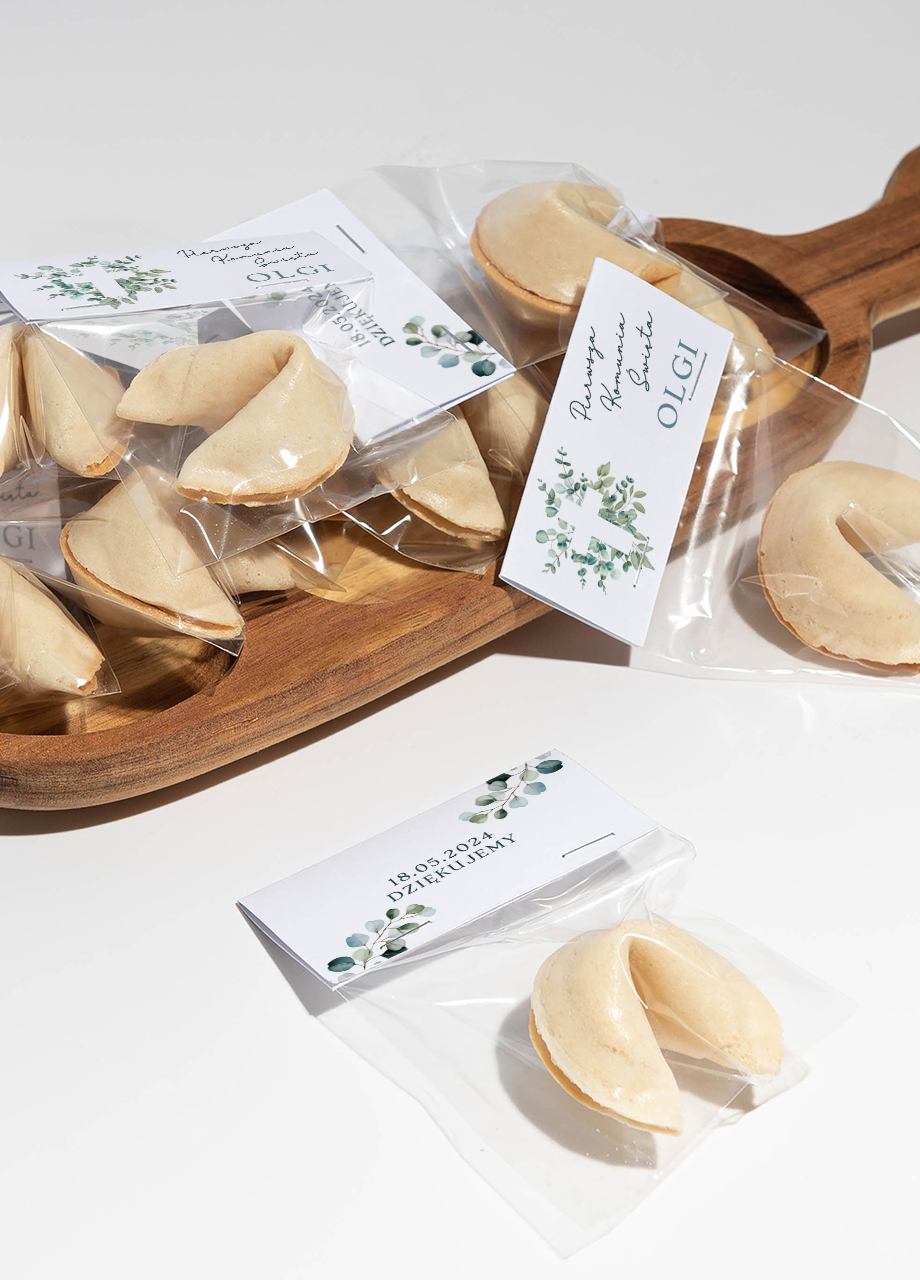 Nasze ciasteczka na Komunię s± starannie wykonane z wysokiej jako¶ci składników, aby zapewnić niezapomniane doznania smakowe. Dodatkowo, każda wróżba została starannie dobrana, by przynie¶ć u¶miech i inspirację każdemu, kto odkryje jej tre¶ć. Ciasteczka z wróżb± to doskonały sposób na stworzenie niezapomnianych chwil podczas przyjęcia komunijnego. Nasze podziękowania komunijne dla go¶ci w postaci ciasteczek z wróżb± to idealny dodatek, który sprawi, że ten dzień będzie jeszcze bardziej magiczny i niezapomniany.