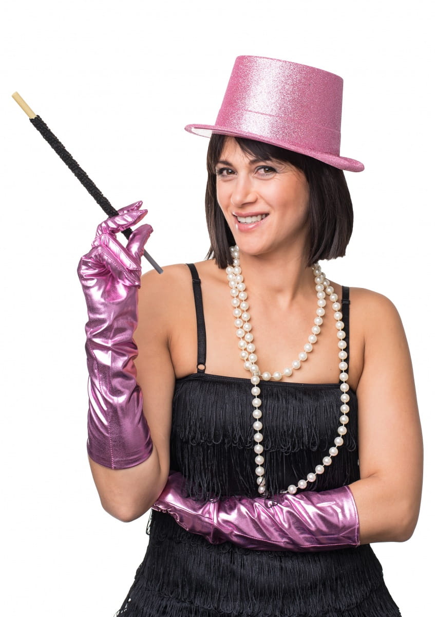 Długie rękawiczki karnawałowe GLAM jasnoróżowe