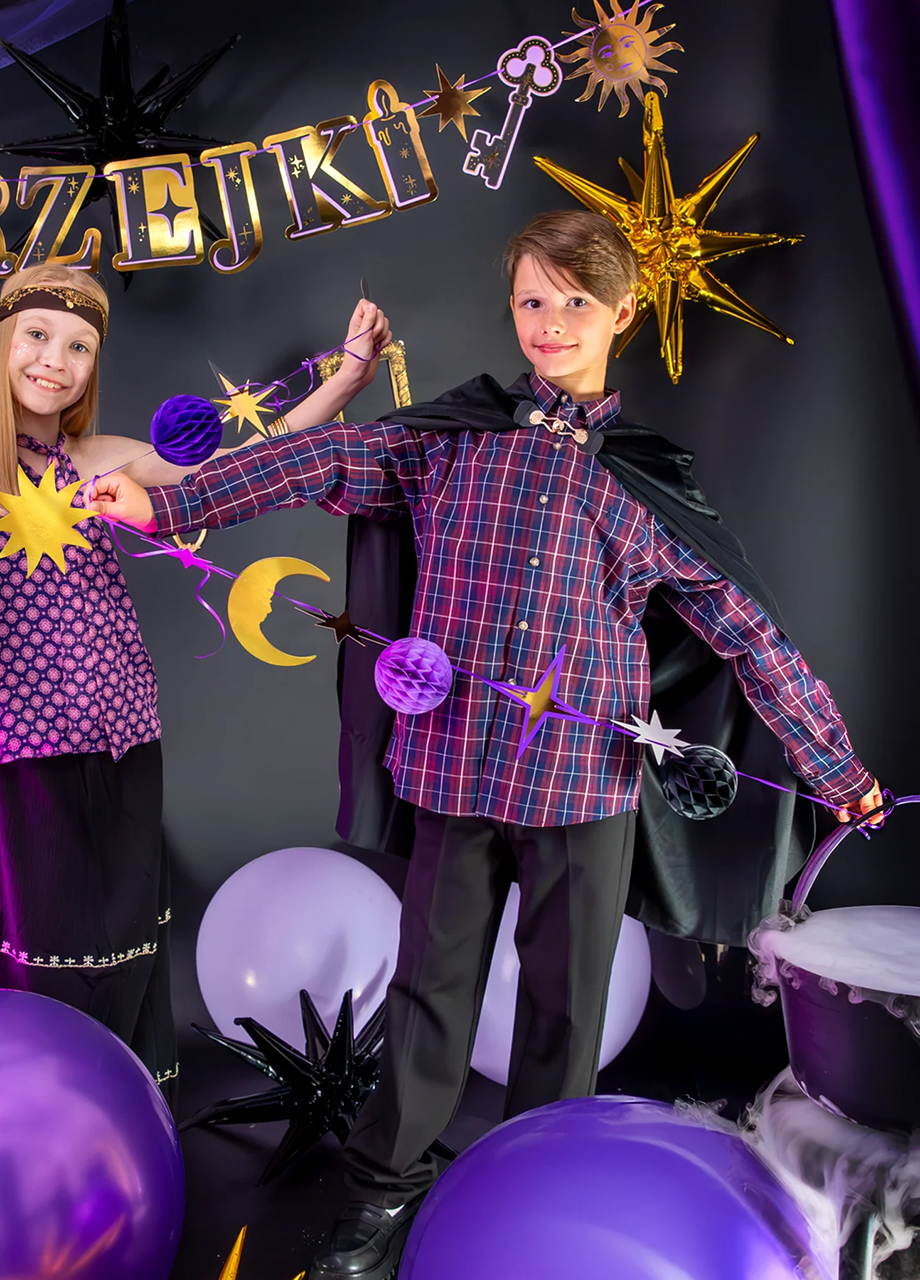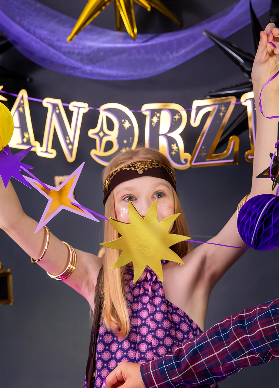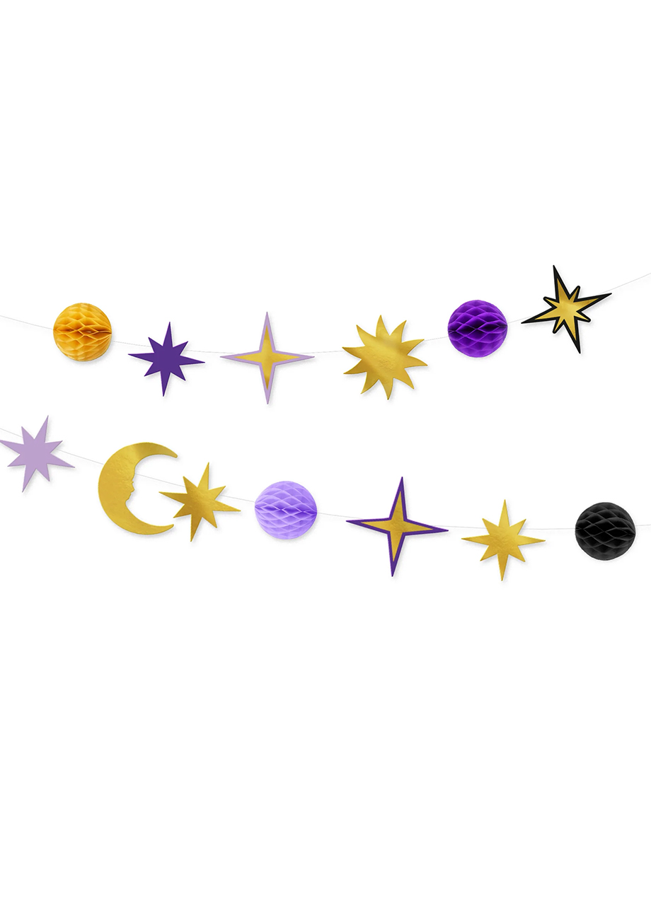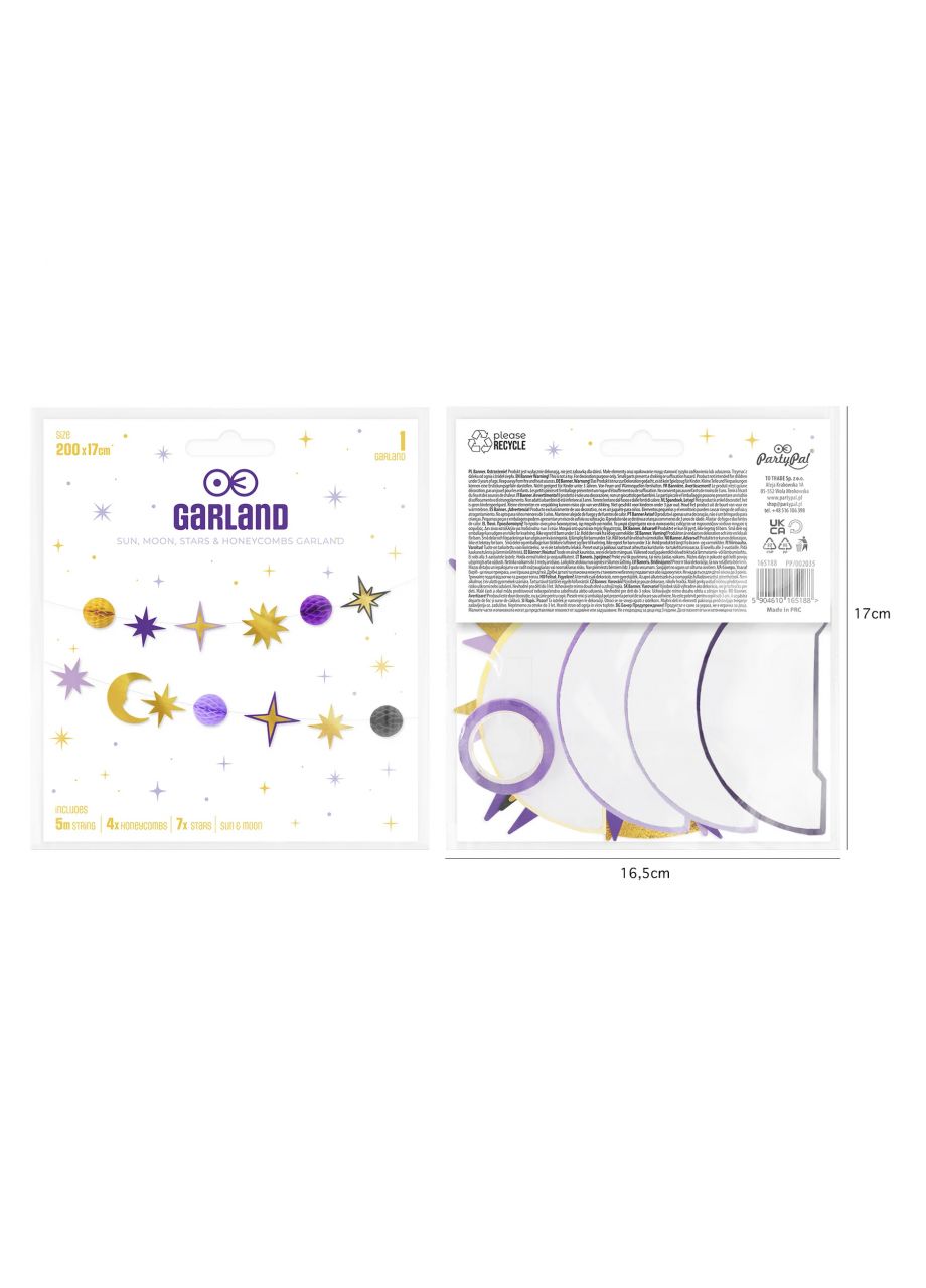 wymiary elementów: 4 szt. honeycomby - średnica ok.10cm (długość razem z zawieszką 17cm); 7 szt.gwiazdy - wymiar ok. 13-16cm; 1 szt. słońce - średnica ok. 15cm; 1 szt. księżyc - wysokość ok. 14cm