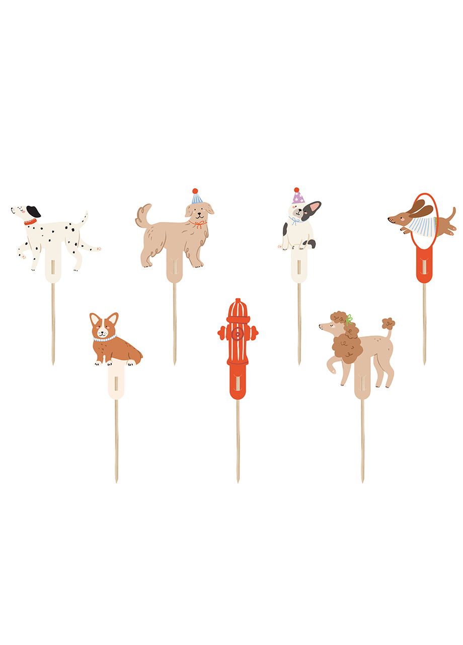 Zaskocz swoich gości uroczymi akcentami i dodaj wyjątkowego stylu dzięki tym psim pikerom do muffinek. Dekoracje do muffinek PIESKI 7 szt. to idealny pomysł na wzbogacenie ozdób na przyjęcie dla każdego fana psów, który dopełni motyw przewodni imprezy i sprawi, że muffinki staną się prawdziwą ozdobą stołu. Spraw, aby każde urodziny były niezapomniane!