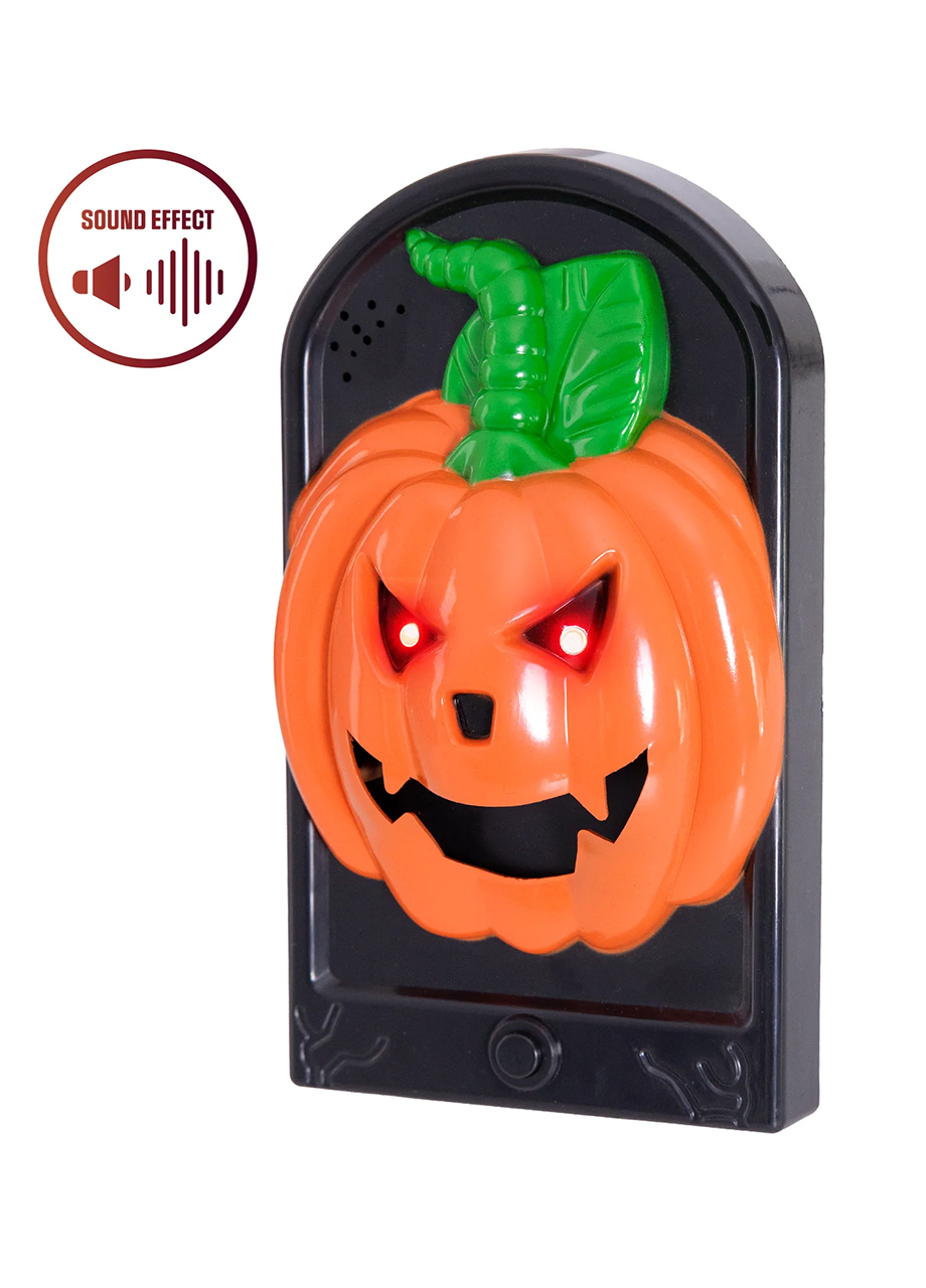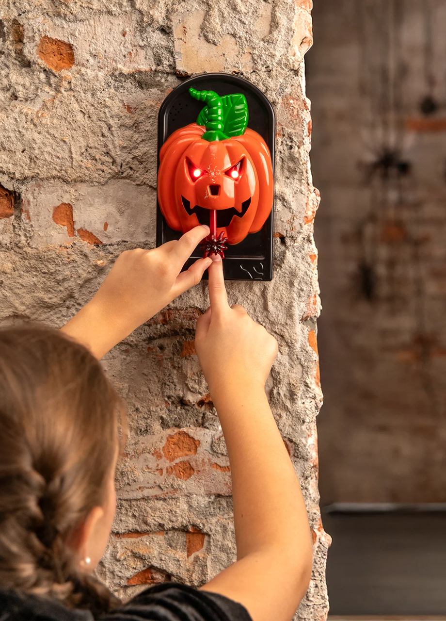 • dzwonek do drzwi w kształcie dyni, wydaje dźwięki, śmiejąc się szyderczym głosem, oczy czaszki świecą