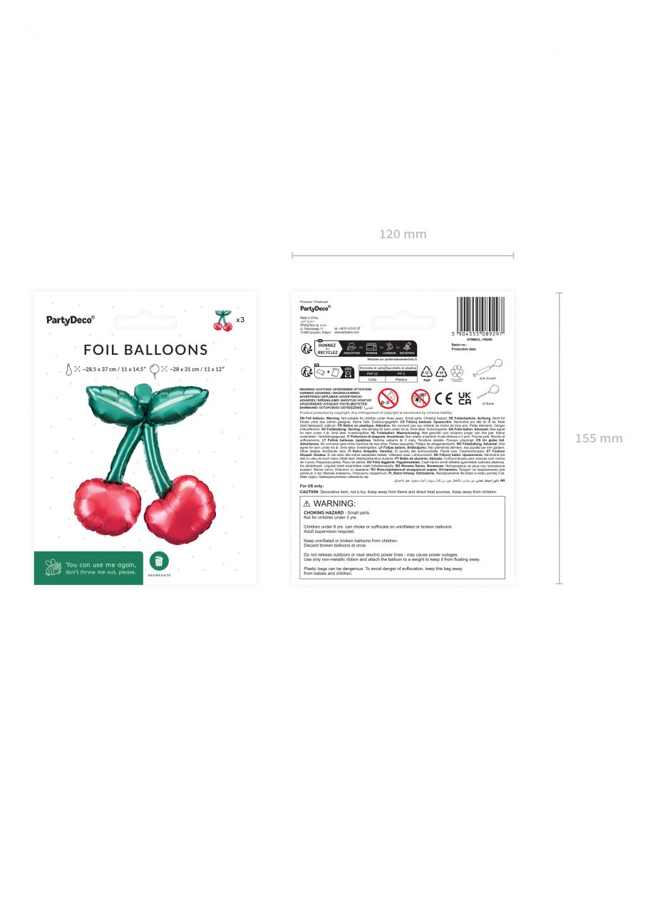 Foliowy balon na powietrze WISIENKI balony do girland 28x31 cm