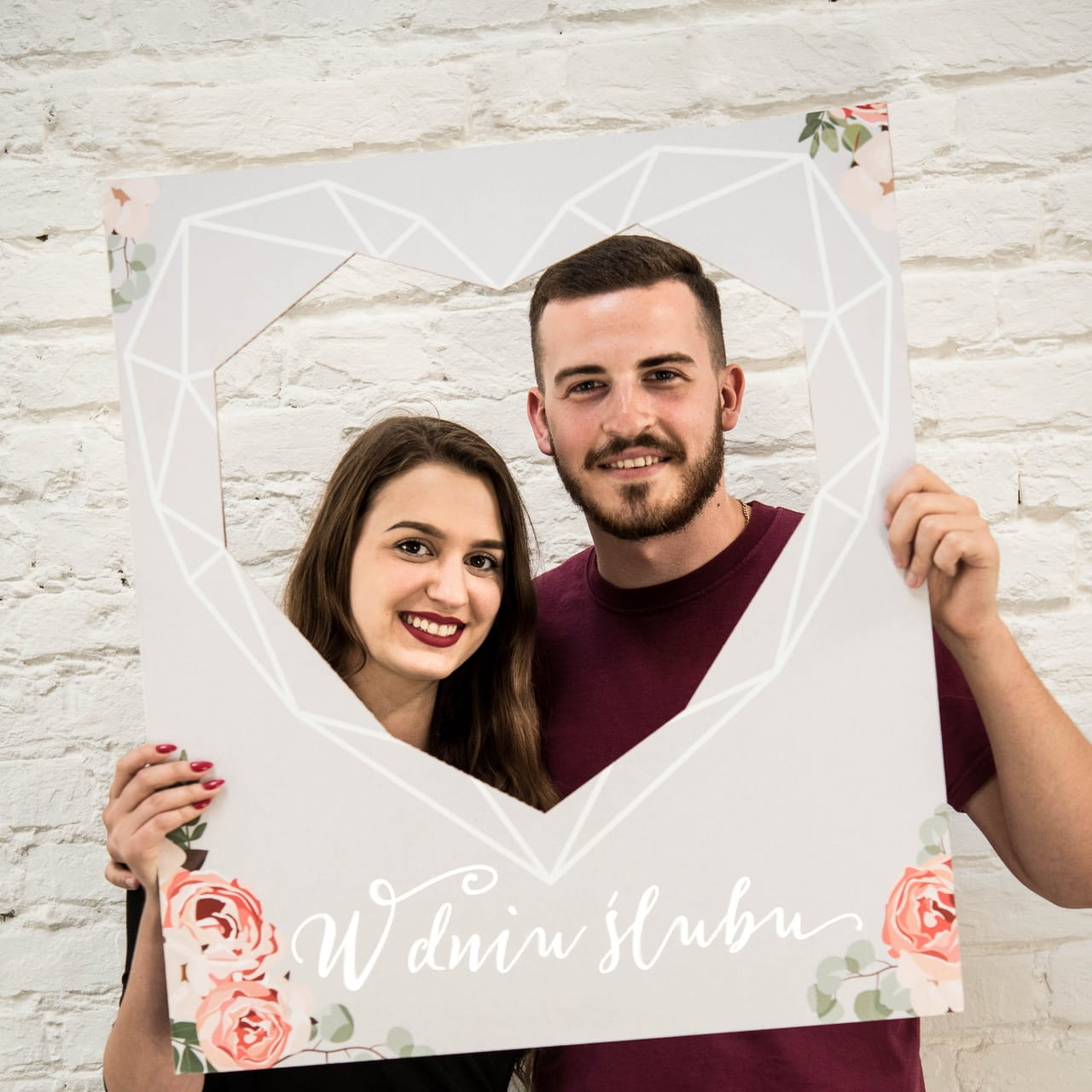 Foto ramka W DNIU ŚLUBU serce. Marzycie o romantycznej sesji ślubnej czy chcecie, aby Wasi goście samodzielnie stworzyli pamiątkowe zdjęcia? Niezależnie od tego jakie macie plany to ramka do fotobudki pomoże Wam je zrealizować.