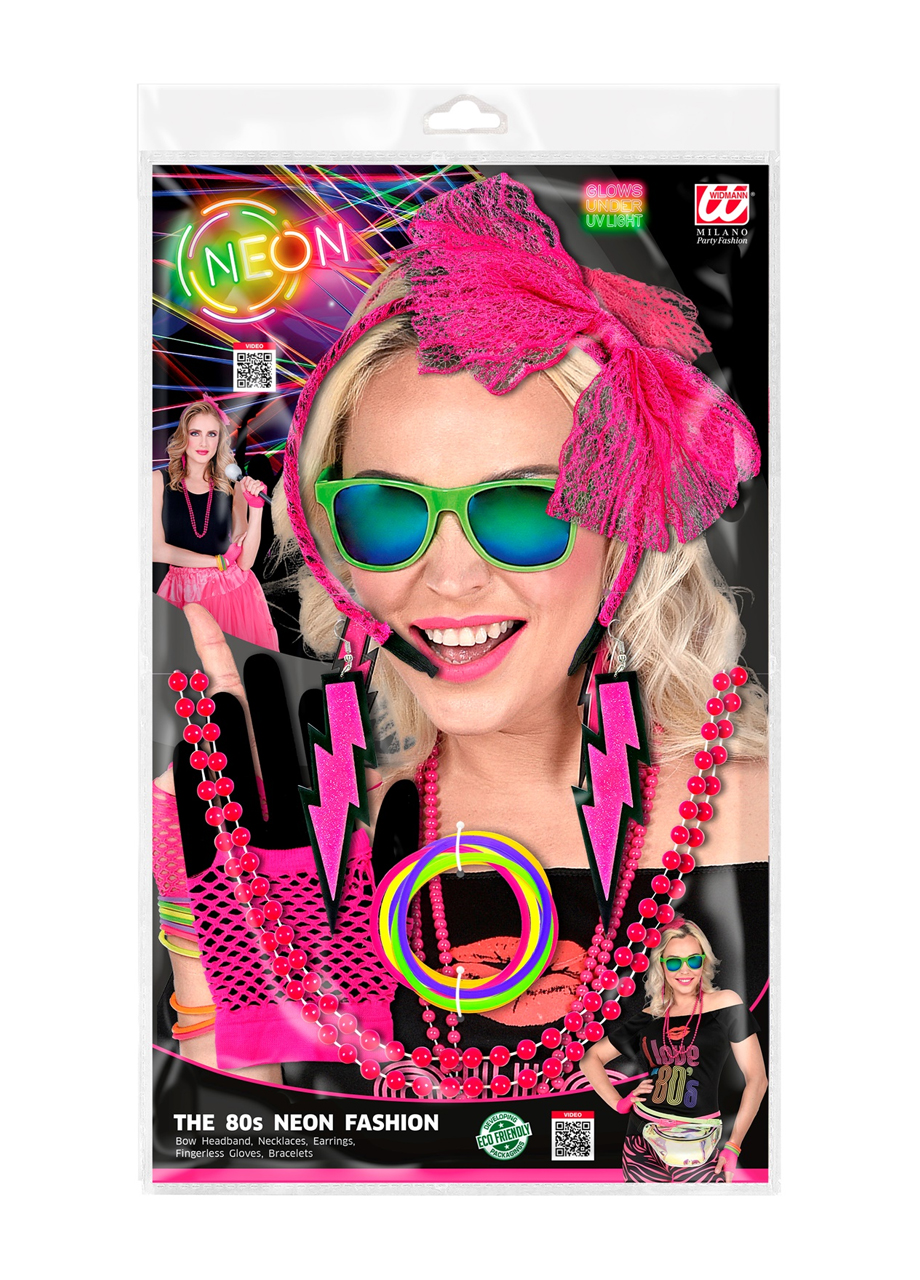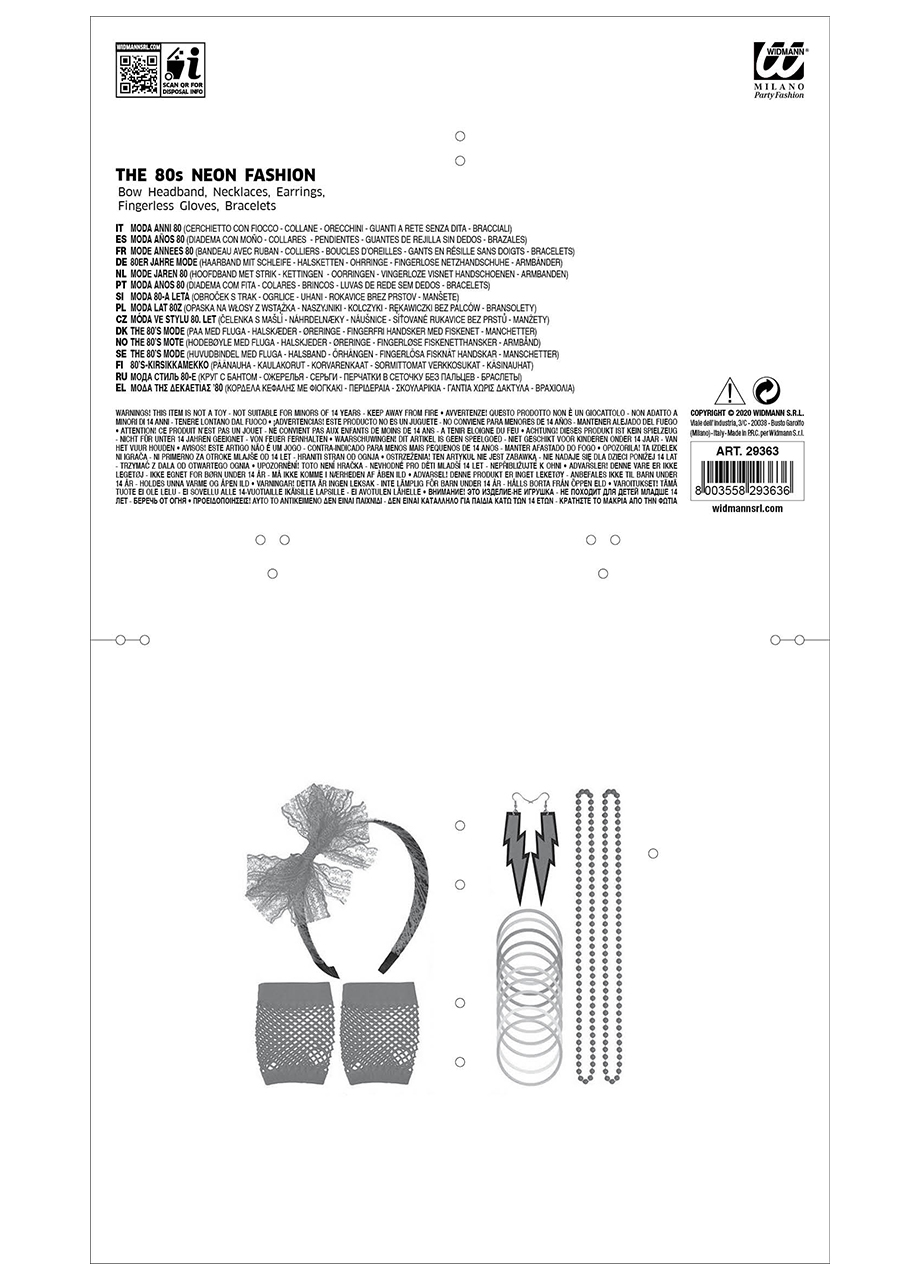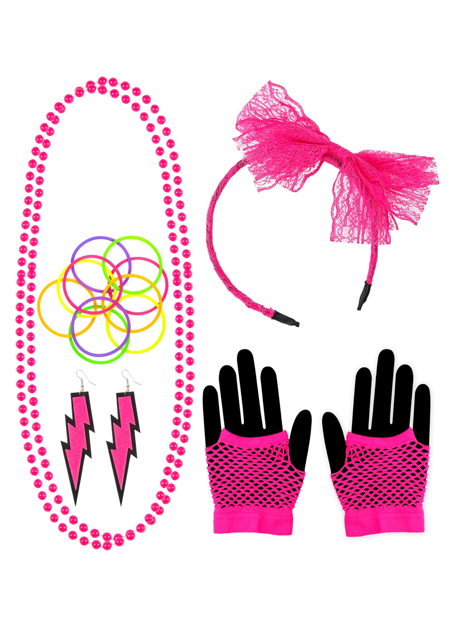 w komplecie: opaska na głowę, rękawiczki, kolczyki, 2 szt. korali,10 szt. bransoletek