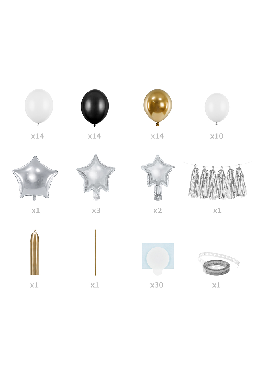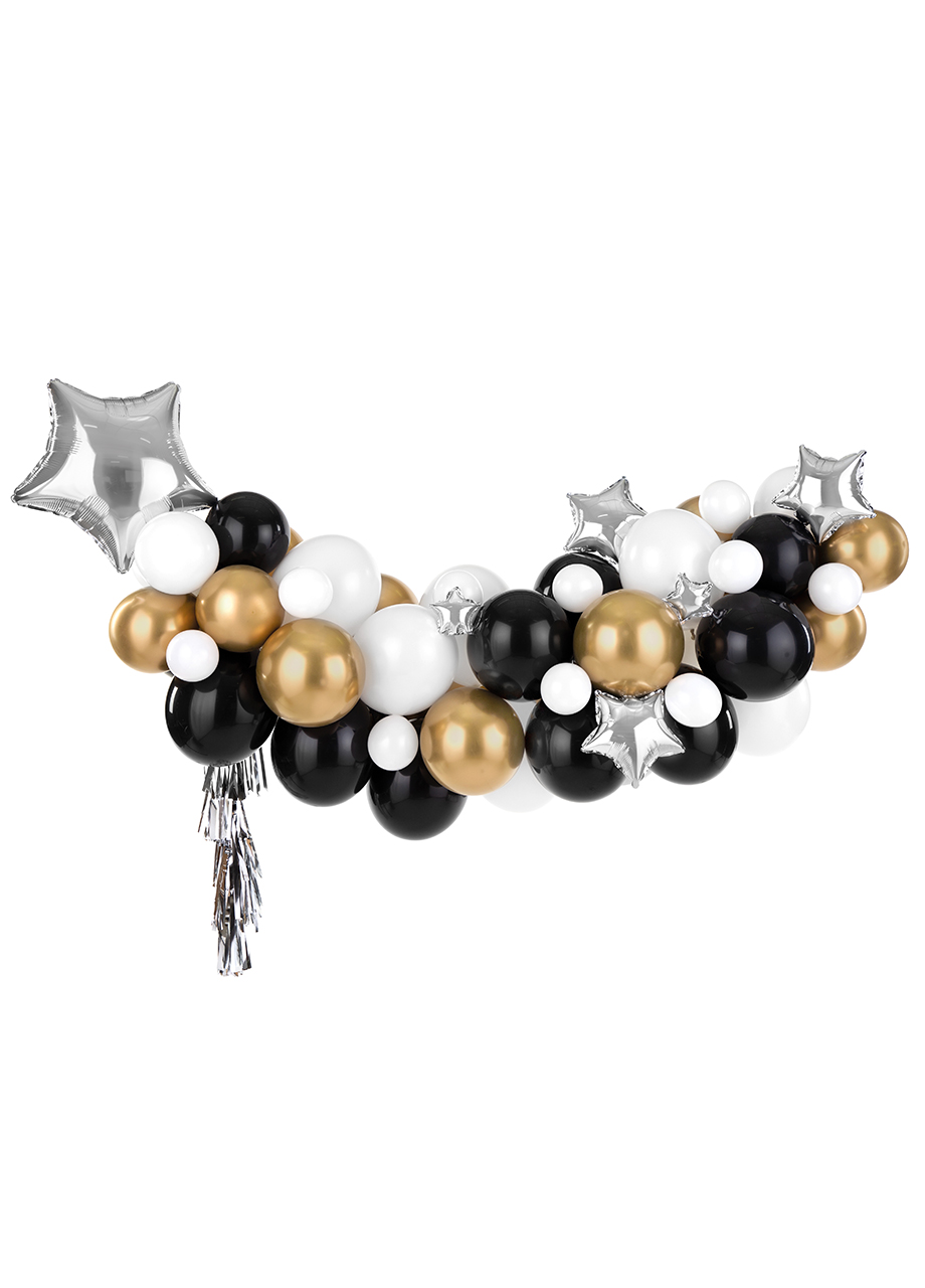 Girlanda balonowa czarno-złoto-srebrna GWIAZDKI
