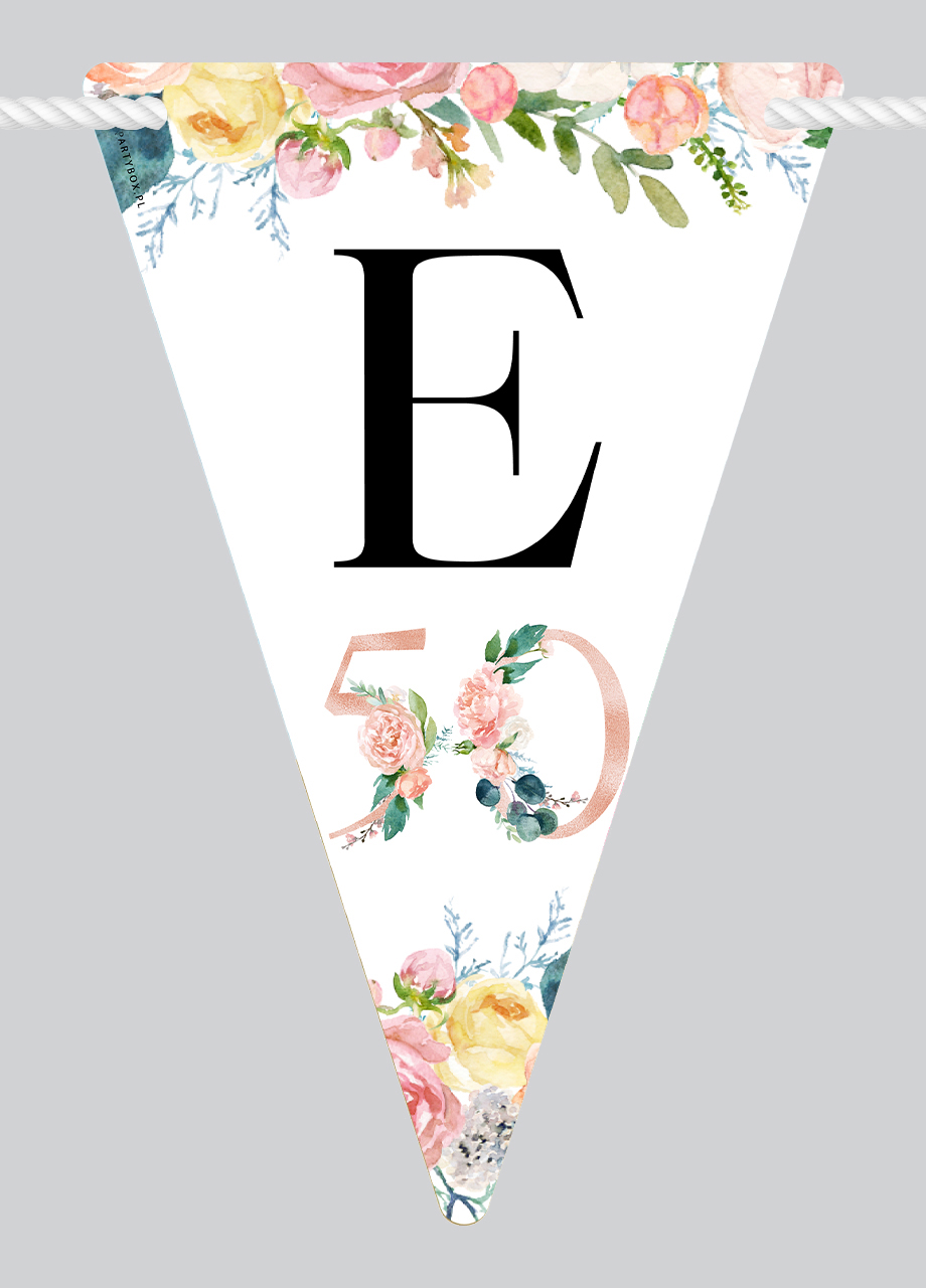 Nasza wyjątkowa girlanda na 50 urodziny KWIATY to idealny dodatek do każdej jubileuszowej imprezy, dodający jej elegancji i radosnego nastroju. Ta personalizowana girlanda ozdobna, zaprojektowana z myślą o złotym wieku, wyróżnia się wyjątkowym wzornictwem i starannością wykonania. Każdy element girlandy jest precyzyjnie wycięty tworząc niepowtarzalny efekt, który z pewnością zachwyci gości.