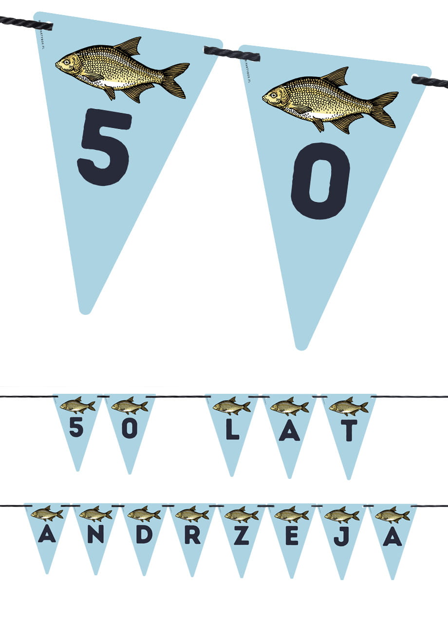Girlanda personalizowana URODZINY WĘDKARZA to idealna wisząca dekoracja na każde przyjęcie urodzinowe miłośnika wędkarstwa. Ta unikalna girlanda urodzinowa zachwyca precyzyjnym wykonaniem oraz dbałością o każdy szczegół. Wisząca dekoracja składa się z kolorowych elementów, które tworzą spójny, tematyczny motyw wędkarski, nawiązujący do hobby solenizanta.