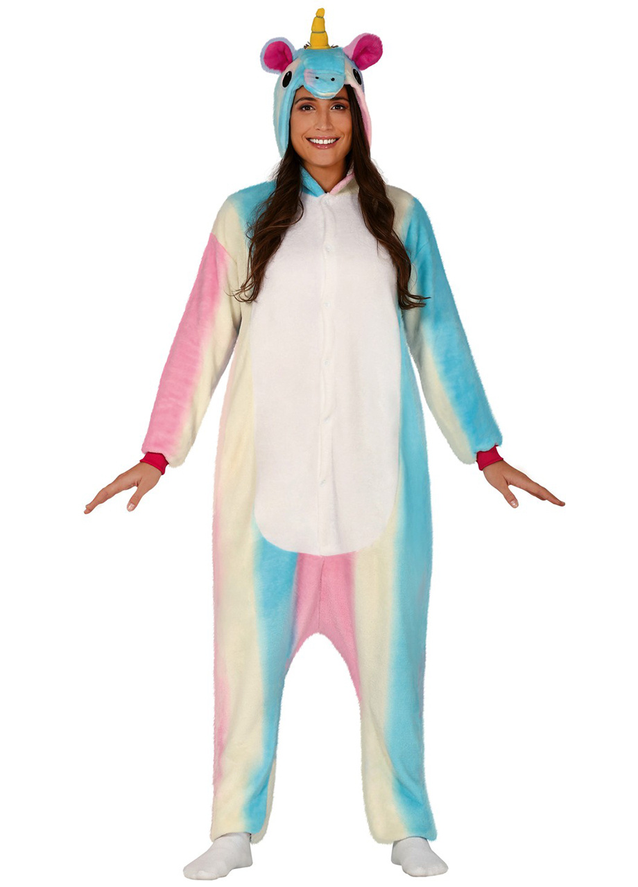Kolorowe kigurumi jednorożec jest zapinane z przodu na guziki. Dodatkowo z tyłu w pasie został wszyty zamek. Przyjemny dla skóry materiał i staranne szycie – to wszystko gwarantuje, że będziesz czuć się komfortowo przez wiele godzin zabawy. Wprowadź magię w otoczenie. Goście będą zachwyceni na widok sympatycznego zwierza w kolorowej odsłonie. Zaczaruj party i wszystkich uczestników. Co ważne, kombinezon z kapturem to przebranie, które możesz zakładać wielokrotnie, nawet bez okazji. Zaproś przyjaciółki na filmowe party w fantazyjnych kigurumi.