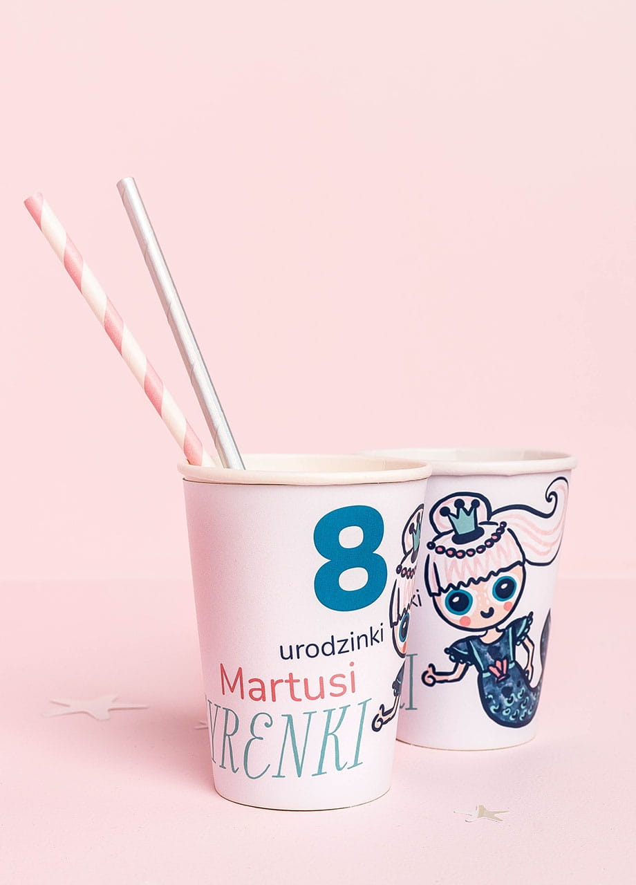 Kubeczki personalizowane urodziny w stylu SYRENKI (8szt.)