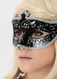 Maska wenecka czarna to tylko jedna z przykrywek, którą możesz zastosować. A dlaczego warto wybrać tę? Czarna maska ozdobiona srebrnym brokatem nada Twojej twarzy tajemniczości i łatwo się wbijesz w grono innych balowiczów. Jednak wenecka maska będzie Cię wyróżniać, dzięki swojemu wyglądowi. Bardzo łatwo ją zawiążesz na delikatne sznurki, które możesz ukryć między włosami i możesz cieszyć się wolnymi rękoma.