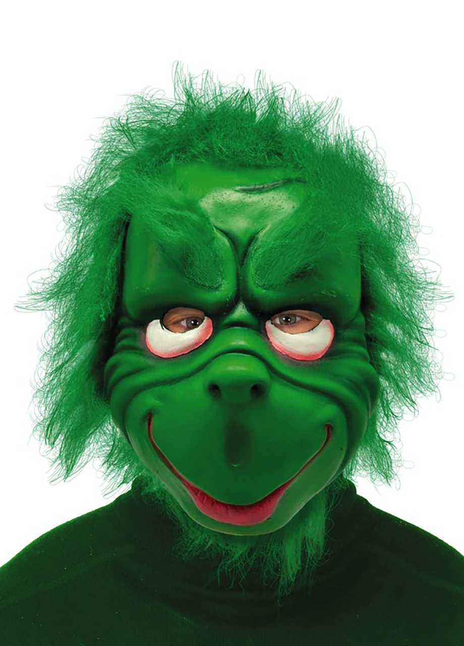 Maska Grincha czyli postaci stworzonej przez Dr. Seussa, bohater powieści opublikowanej w 1957 roku zatytułowanej "Jak Grinch ukradł święta". To zielony, złośliwy stworek, który postanawia ukraść święta mieszkańcom Whoville. Postać ta cieszy się dużą popularnością, szczególnie po premierze filmu. Maska Grinch świetnie sprawdzi się nie tylko w święta, ale także na Halloween. Maska jest odpowiednia na twarz dorosłej osoby, a dzięki otworom na usta, nos i oczy, jej noszenie będzie komfortowe. Maska jest dodatkowo ozdobiona zielonymi, charakterystycznymi dla postaci włosami. Dzięki mocowaniu na gumkę, tył głowy pozostaje odkryty co zapewnia komfort nawet w ciepłych pomieszczeniach.