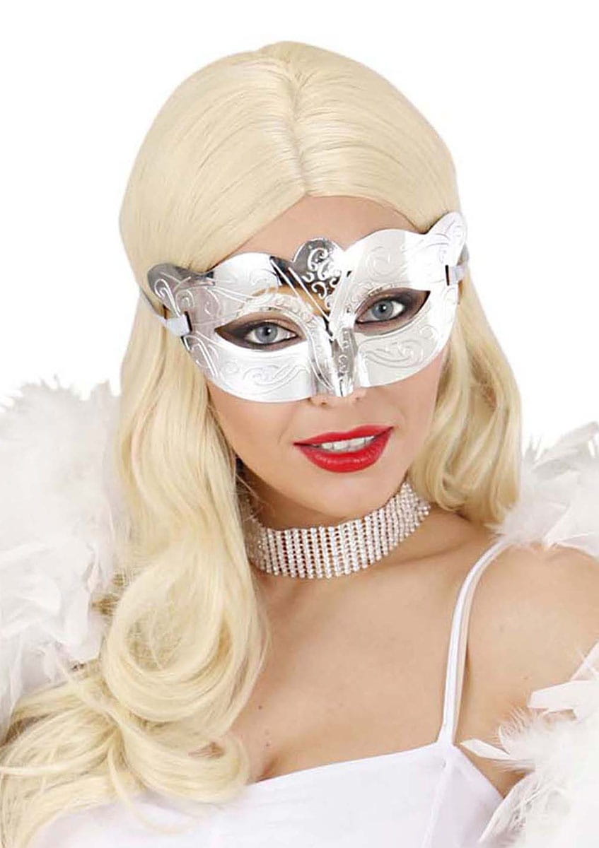 Maska karnawałowa TAJEMNICA srebrna maska wenecka