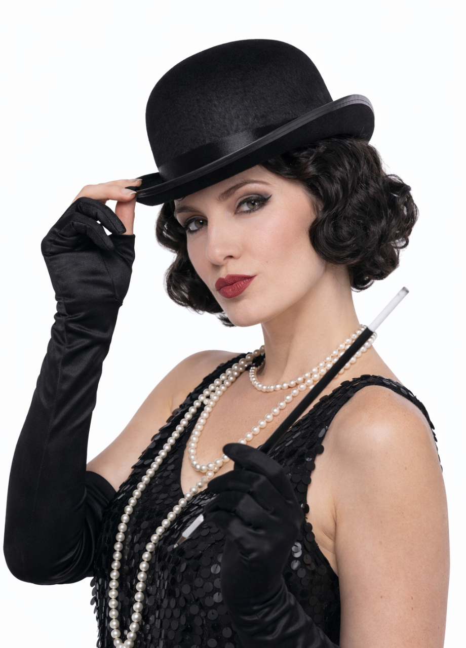 Prezentowany melonik czarny lata 20 został wykonany z filcu. Wygodnie się nosi i ma uniwersalny rozmiar, dzięki czemu pasuje na prawie każdą głowę. Czarny kapelusik to również świetny pomysł na dodatek do stylizacji inspirowanej dawnymi dekadami. Ten melonik kapelusz doda szyku i uroku każdemu, kto chce wyróżnić się wyjątkowym dodatkiem.