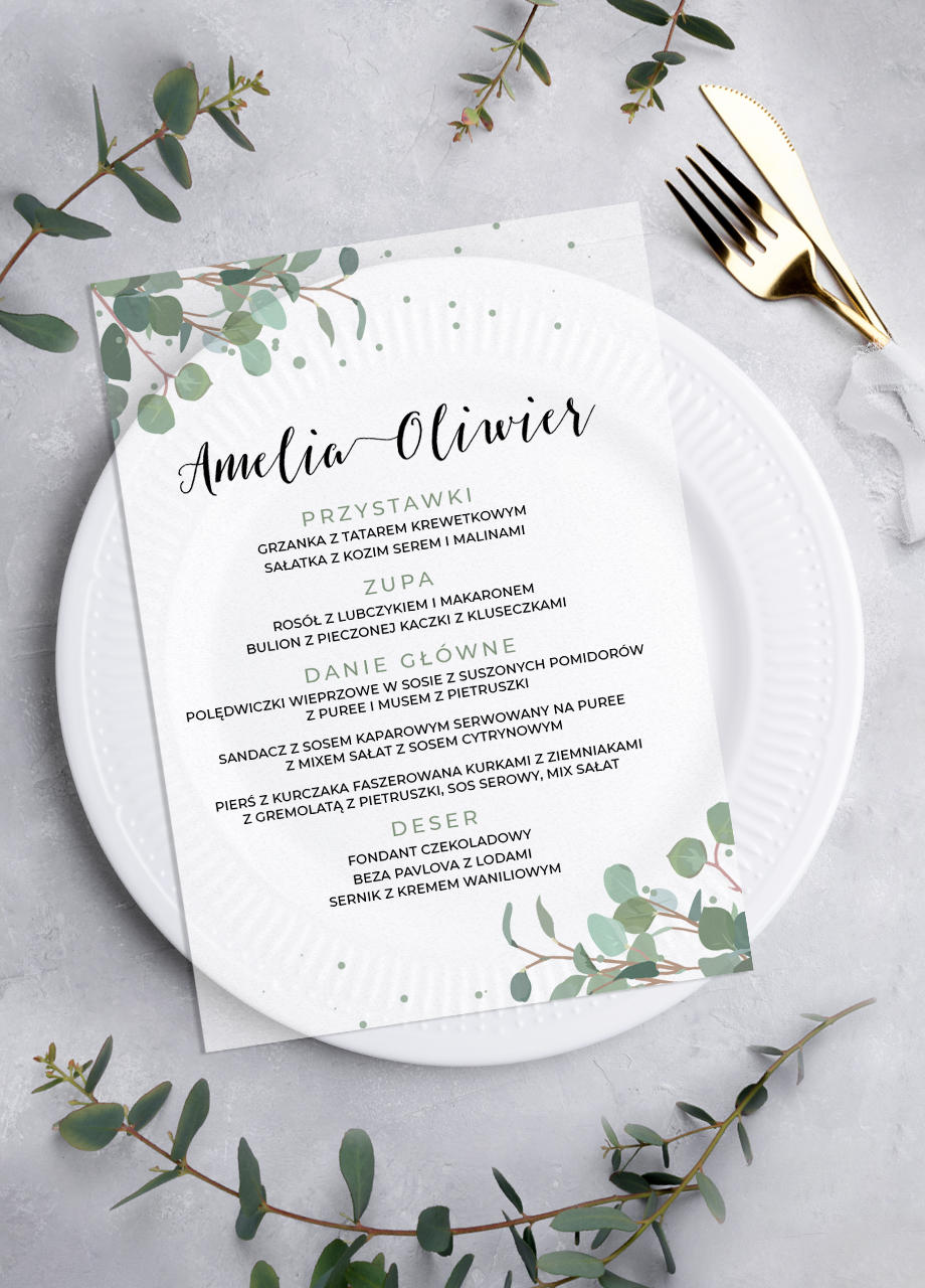 w komplecie: minimum 10 arkuszy menu z kopertami C5