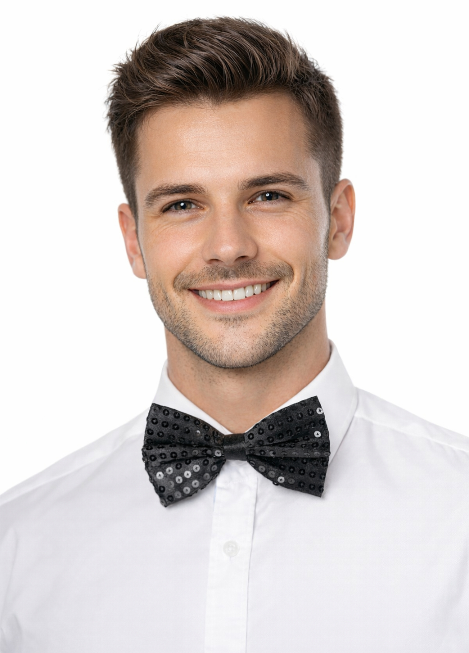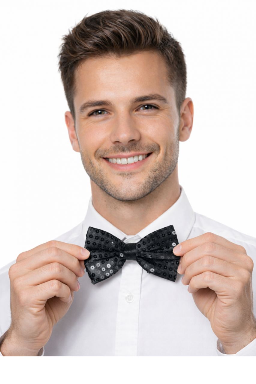 Get shine! Sylwester, karnawał czy inna okazja warta błyszczenia? Bądź przygotowany! Mucha cekinowa to dodatek pasujący do każdego stroju. Lśniące cekiny na czarnej muszce nadają zarówno eleganckiego, jak i zabawowego motywu. Ten jeden element może odmienić cały Twój strój, kiedy nie jesteś pewny co do swojego wyglądu, a ni jaki charakter będzie miała impreza. Jesteś przygotowany na wszystko! Pozostała tylko dobra zabawa.