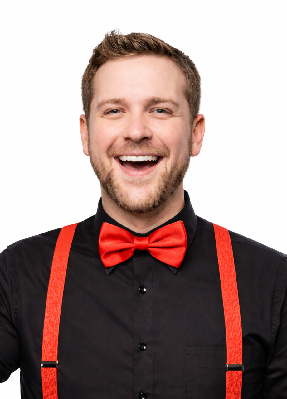 Mucha satynowa na gumce czerwona to oryginalny dodatek na eleganckie party z przymróżeniem oka. Muszka w połączeniu z szelkami i innymi dodatkami może być wspaniałym uzupełnieniem stroju clowna.
