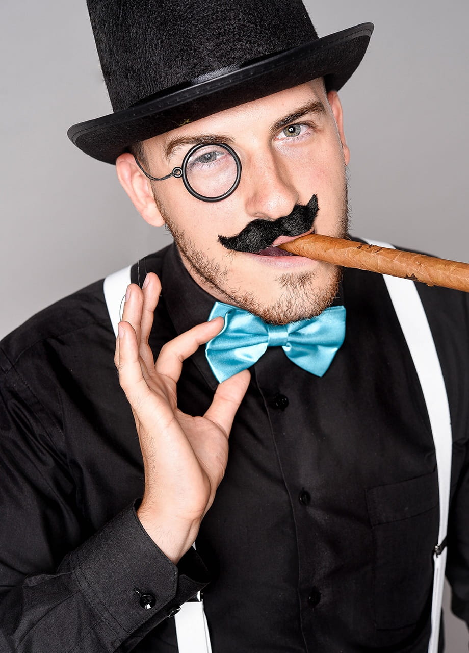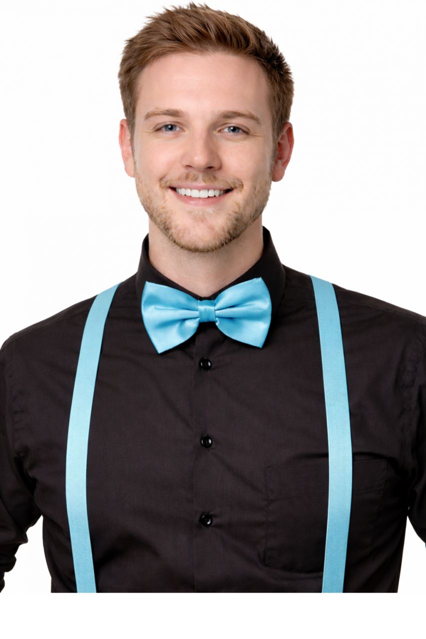 Mucha satynowa na gumce niebieska to idealny dodatek na urodzinowe party z przymróżeniem oka. Muszkę, dla pełnego efektu, warto połączyć z niebieskimi dodatkami, takimi jak niebieskie szelki, kapelusz czy okulary.