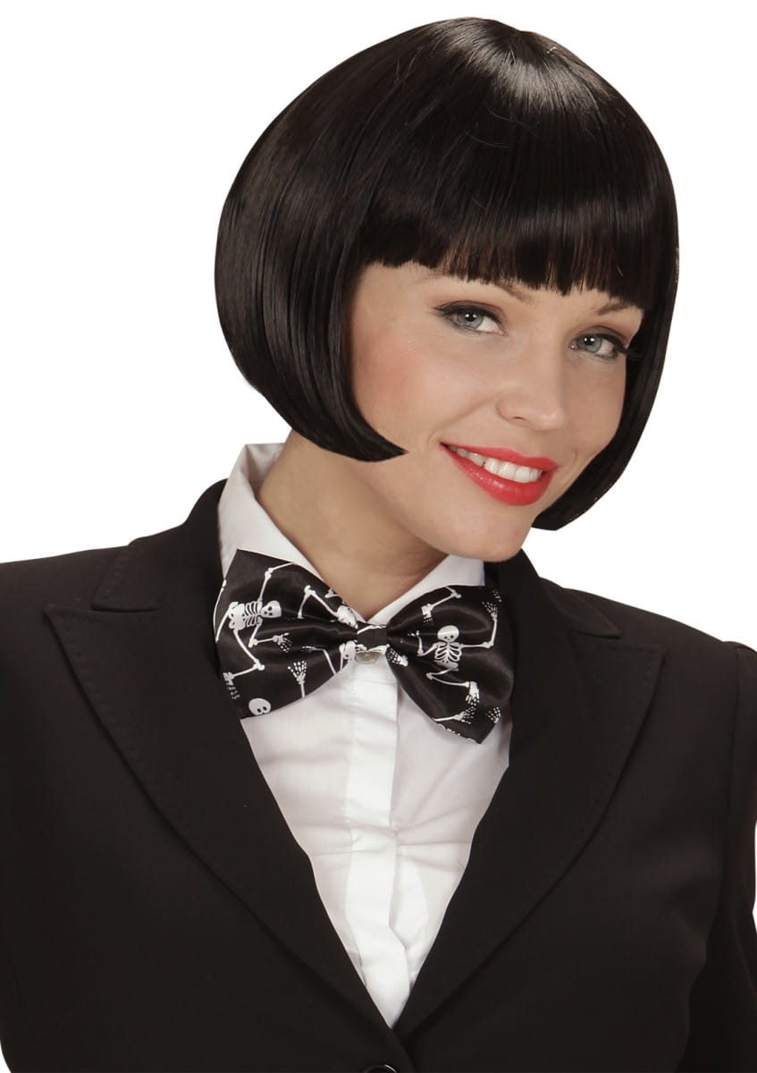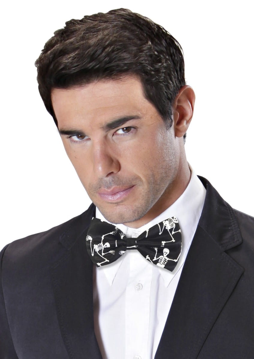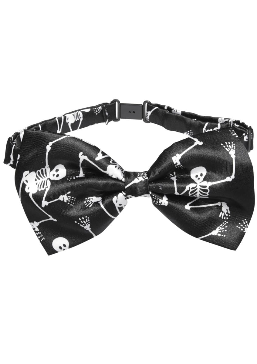 muszka wykonana z błyszczącego materiału, z nadrukiem szkieletów, regulowana, zapinana na plastikową klamrę
