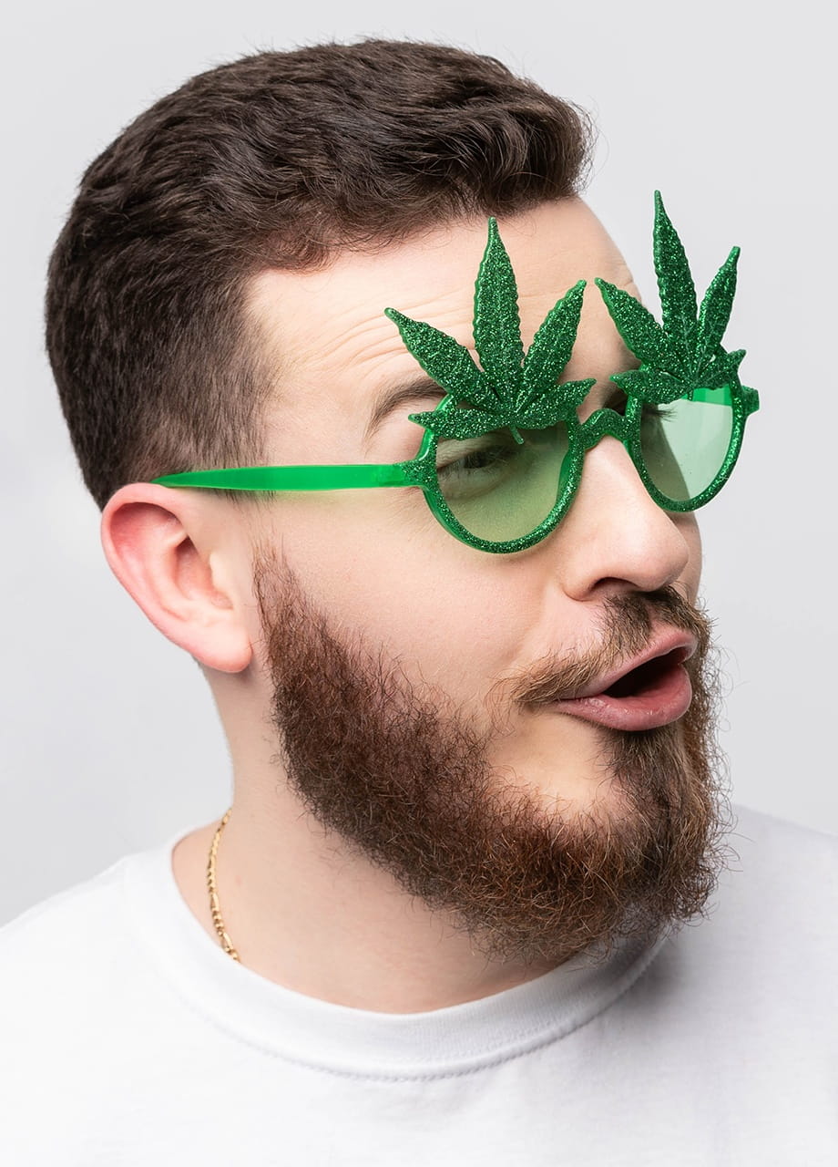 Okulary hipisa MARIHUANA będą idealnym dodatkiem do stroju na reggae party, sprawdzą się także jako śmieszny rekwizyt w fotobudce.