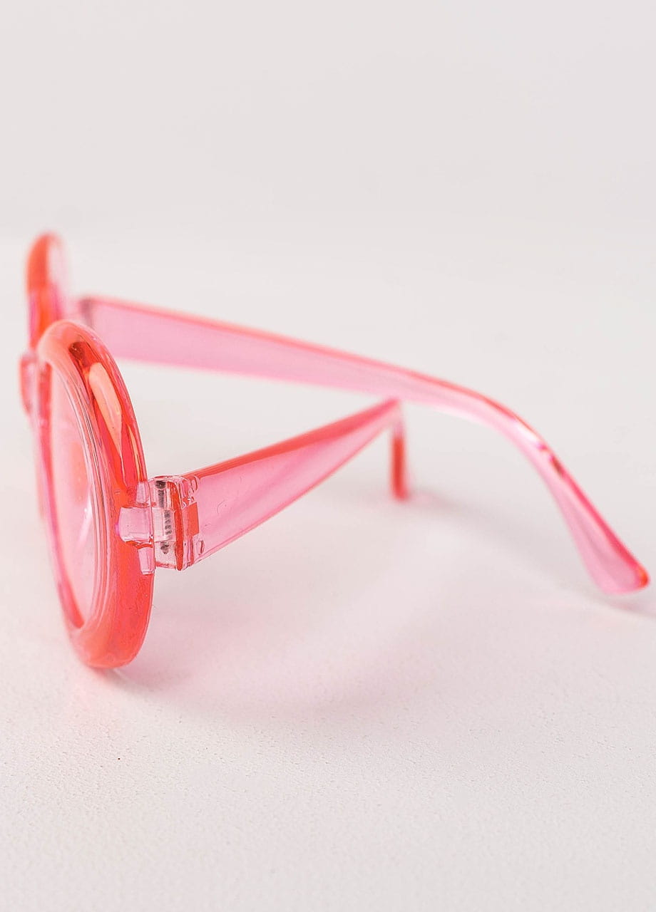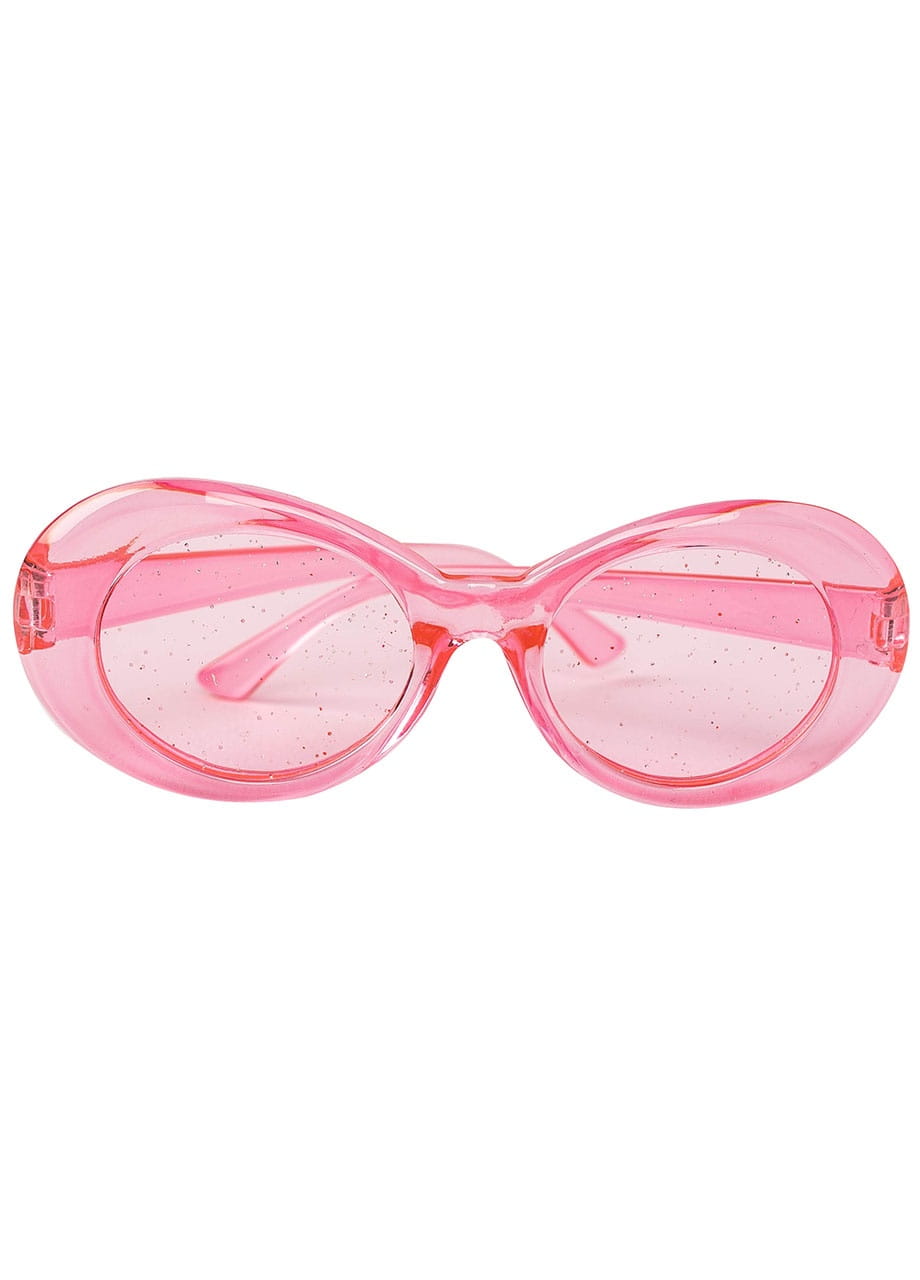 plastikowe okulary z różowymi szkiełkami ze srebrnym brokatem