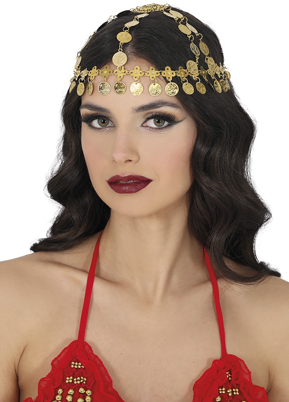 Opaska na głowę z monetami - biżuteria w stylu Bollywood to elegancka i efektowna biżuteria, która zachwyca swoim złotym połyskiem i bogatym zdobieniem. Inspirowana filmowym przepychem biżuteria bollywood doskonale podkreśli urodę i doda charakteru każdej stylizacji. Idealna zarówno na imprezy tematyczne, jak i wyjątkowe okazje. Ta stylowa ozdoba głowy to połączenie kobiecości, elegancji i orientalnego uroku.