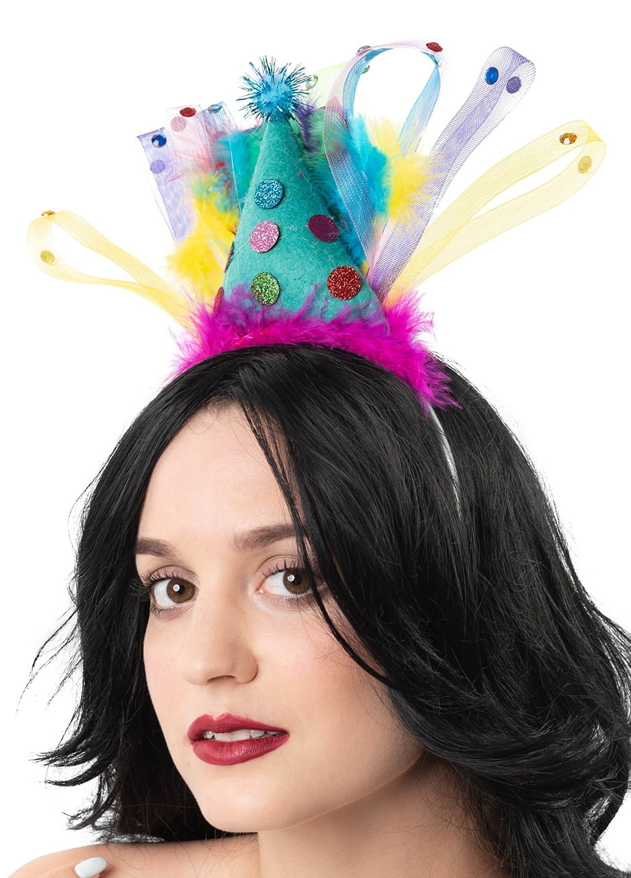 Kolorowa opaska KAPELUSIK ozdobi głowę dziecka, jak również sprawdzi się na imprezie dla dorosłych. Wesołe nakrycie głowy w formie mini czapeczki polecamy na urodzinowe party, kinderbal czy zabawę kawnawałową. Dodatek do stroju lub jako drobny gadżet imprezowy.