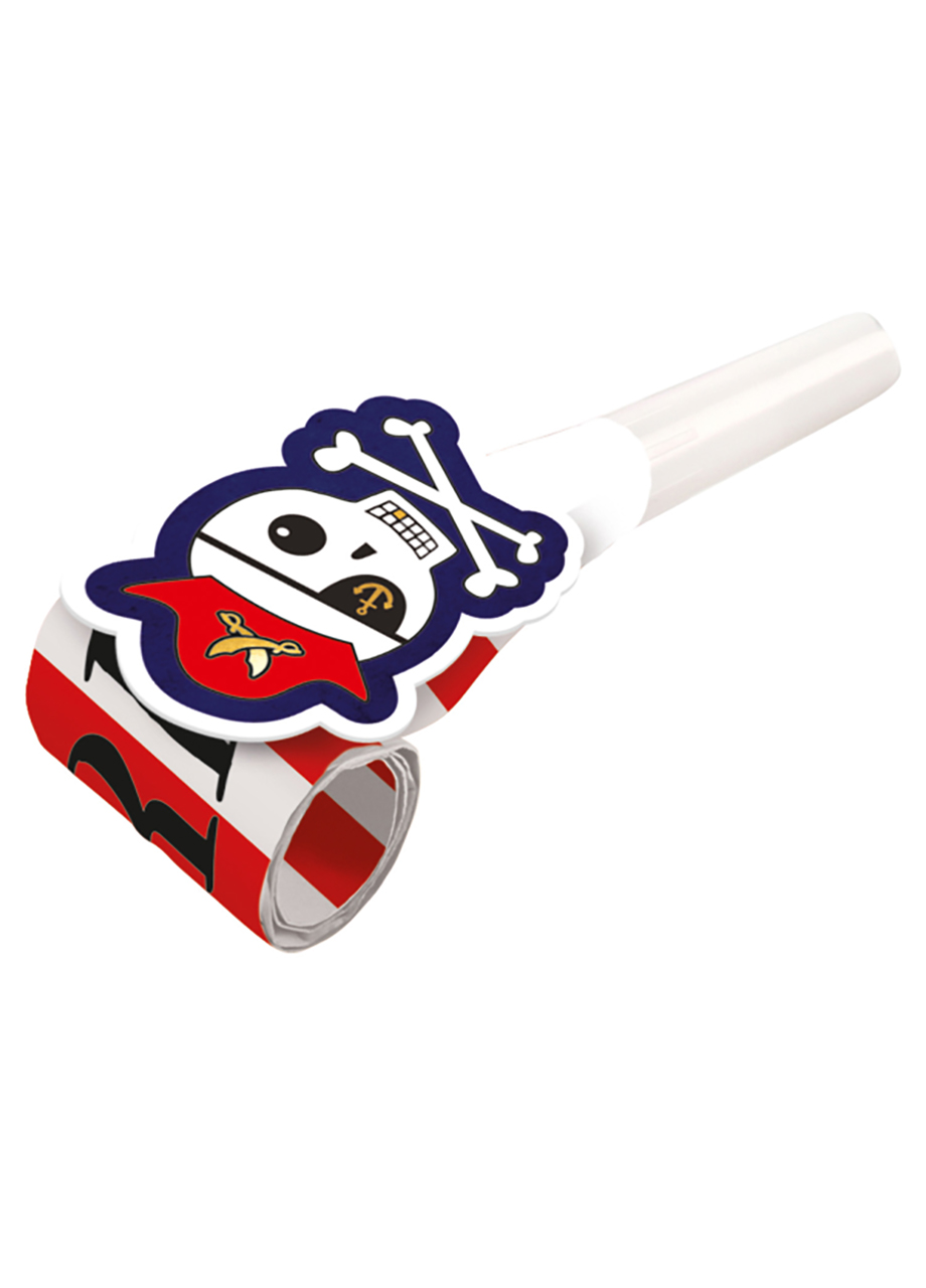 Planujesz przyjęcie tematyczne i chcesz zadbać o każdy detal? Te kolorowe dodatki w pirackim stylu wprowadzą wyjątkowy klimat i rozbawią wszystkich gości. Wyrazista grafika z motywem czaszki i żywe kolory przyciągają uwagę i świetnie komponują się z dekoracjami. Papierowe gwizdki urodzinowe to doskonały wybór na imprezę pełną śmiechu i zabawy.