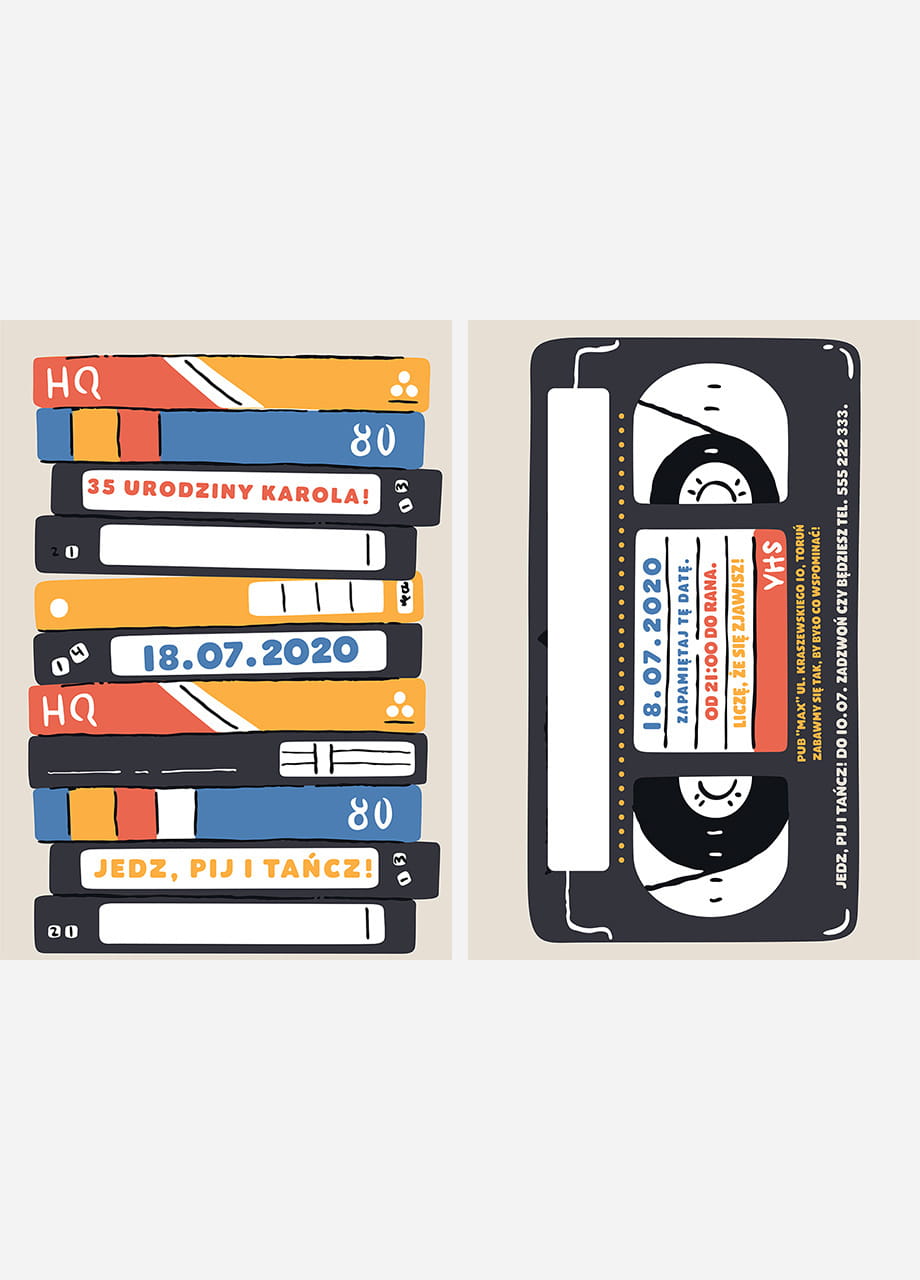 Kiedy zamkniesz oczy, przeniesiesz się w przeszłość, gdzie czas płynął wolno, a świat był pełen kolorów. Gdy patrzysz na zaproszenie VHS lat 80, automatycznie poczujesz ten vibe. To personalizowane zaproszenie na urodziny to połączenie nostalgii, oryginalności i tajemniczego ducha ery lat 80. Co sprawia, że są wyjątkowe? Oryginalny VHS-owy styl, zachowany w harmonijnym połączeniu z indywidualnymi szczegółami sprawia, że są jedyne w swoim rodzaju. Takie zaproszenia urodzinowe rozbudzają zmysły i ożywiają wspomnienia. Trzymając je w dłoniach, czujesz, jakby wszystko wokół się zatrzymało. Zaproszenia na urodziny to idealny wybór dla tych, którzy pragną podkreślić wyjątkowość i unikalność przy organizacji niezapomnianej imprezy urodzinowej.