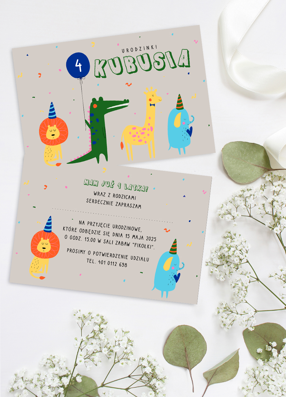 Szukasz wyjątkowego sposobu na zaproszenia urodzinowe? Personalizowane zaproszenie na urodziny dziecka SAFARI to idealny wybór! Kolorowe wzory, urocze zwierzęta i przyjazny design sprawią, że mali goście poczują się jak na prawdziwej przygodzie. To świetny sposób, by zaprosić rodzinę i przyjaciół na niezapomnianą zabawę.