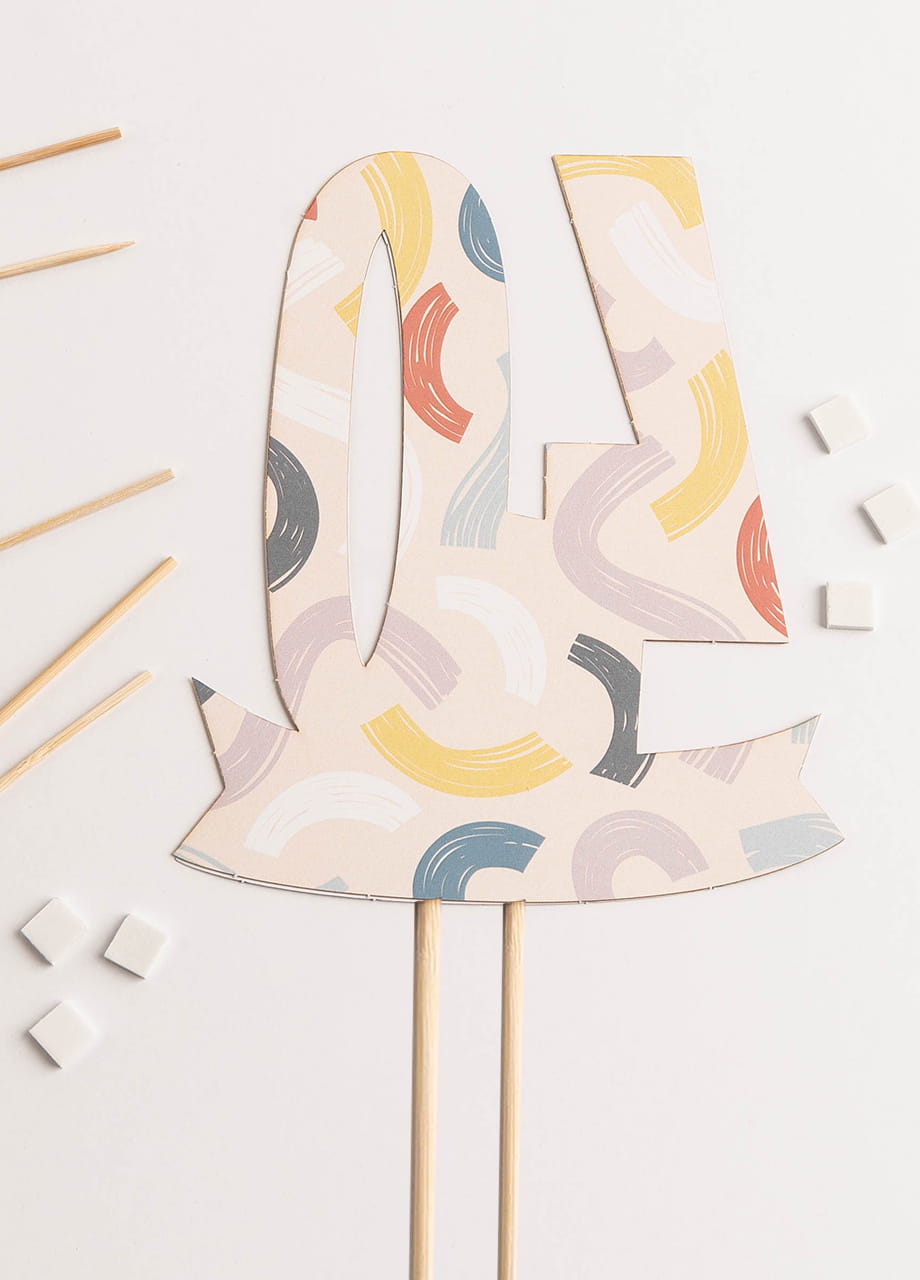 Personalizowany topper na tort w kształcie cyfry 40 i miejscem na imię solenizanta. Topper na tort urodzinowy lub muffinki to wygodny i prosty sposób na udekorowanie wypieków na 40 urodziny.