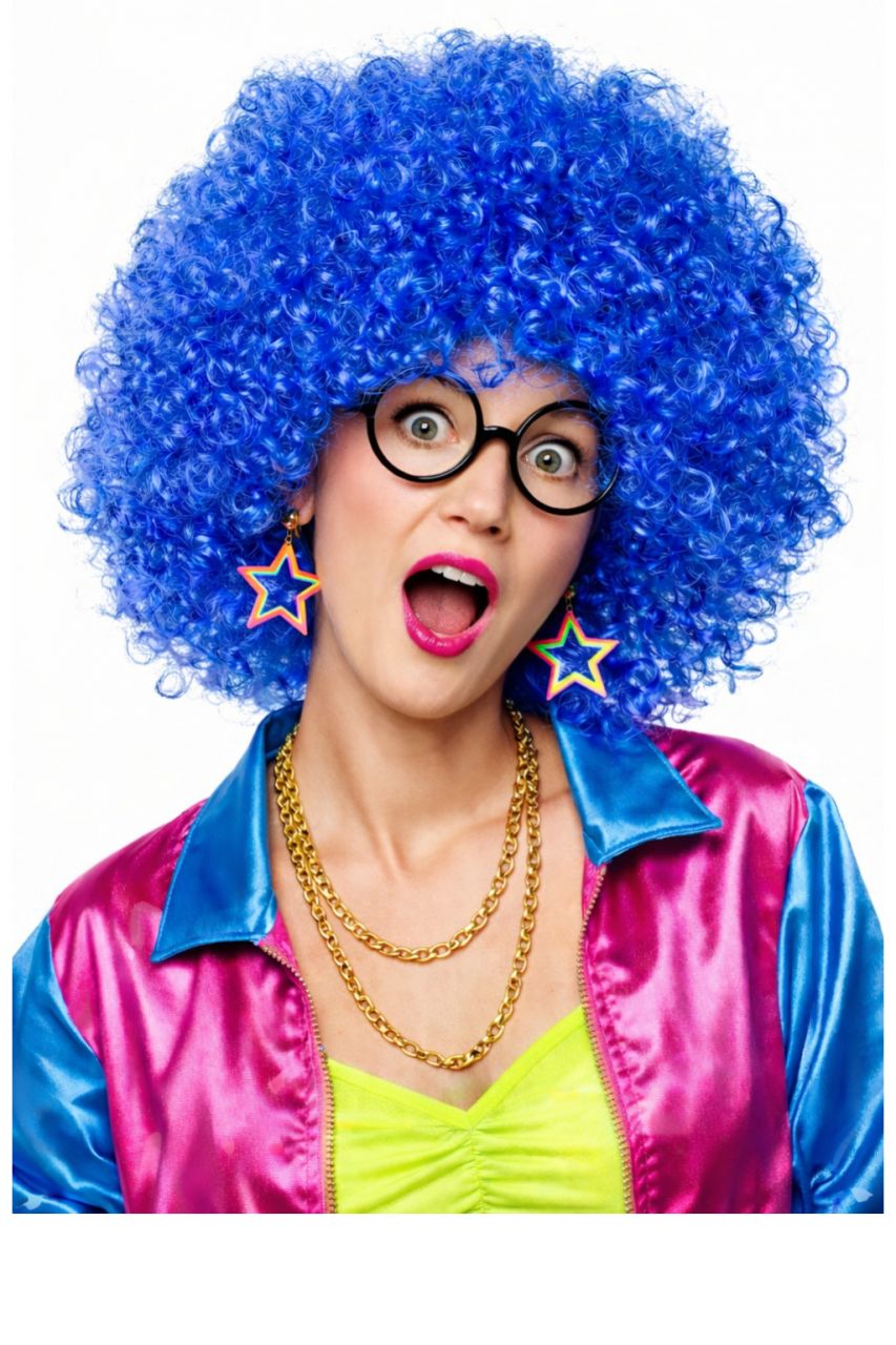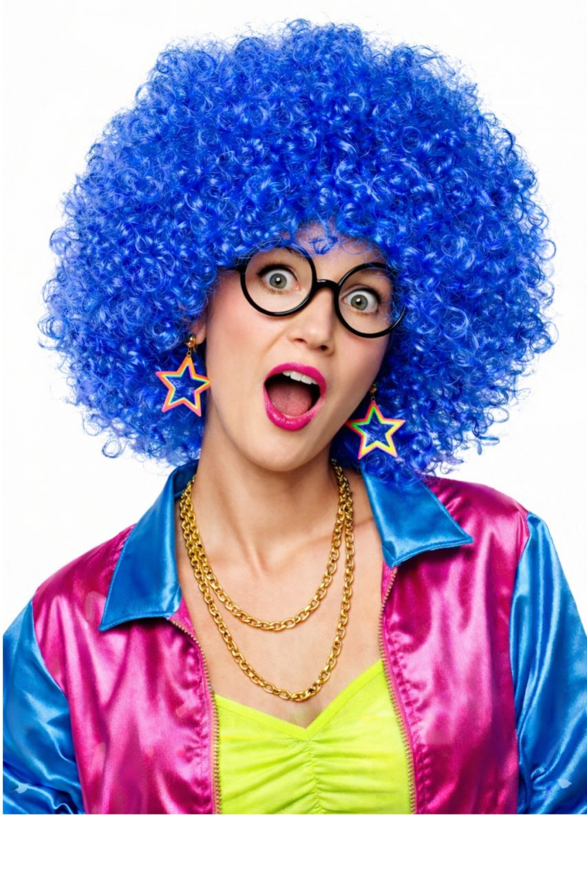 Świetna peruka AFRO niebieska to wykonana ze sztucznych włosów bujna ozdoba na głowę. Burza loków i rozwichrzone pukle w neonowym odcieniu sprawdzą się w przypadku wielu imprez towarzyskich. Kostiumowy sylwester w rytmie funky i R&B, urodziny z motywem przewodnim boogie i karnawał w stylu DISCO. Barwna peruka niebieska AFRO doskonale dopełni również strój zabawnego klauna. Jesteśmy przekonani, że nie będzie to jednorazowa przygoda z niebieskimi lokami. Fryz afro ma za sobą długą historię. Pamiętaj, że nie jest to tylko przykuwający uwagę wygląd. To przede wszystkim miłość do muzyki i radość w sercu.