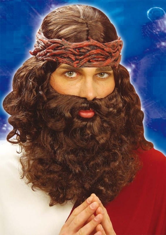 Peruka Jezusa, dzięki której stworzysz kompletny strój Jezusa na Jasełka albo nieco swobodniejszą imprezę przebieraną. Do peruki dołączona jest gęsta broda Jezusa oraz wąsy przysłaniające twarz, dzięki czemu nikt nie zdoła cię rozpoznać i każdy pomyśli, ze Jezus Chrystus we własnej osobie ponownie znalazł się wśród nich.