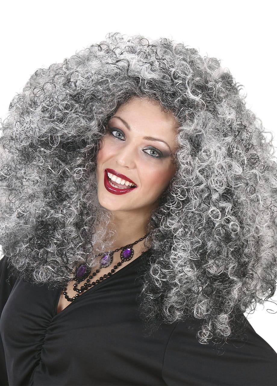 Peruki na Halloween s± genialnym sposobem na podkręcenie nawet najprostszej stylówki. Oto spektakularna peruka wiedĽmy z siwych, kręconych włosów. Je¶li pozycję wiedĽmy w hierarchii poznaje się po dziko¶ci jej włosów, to z t± peruk± stworzysz strój wiedĽmy nad wiedĽmami. Siwo-czarne loki o imponuj±cej długo¶ci i gęsto¶ci robi± ogromne wrażenie i daj± pewno¶ć, że je¶li na imprezie Halloweenowej pojawi się inna wiedĽma, to będzie musiała uznać twoj± wyższo¶ć.