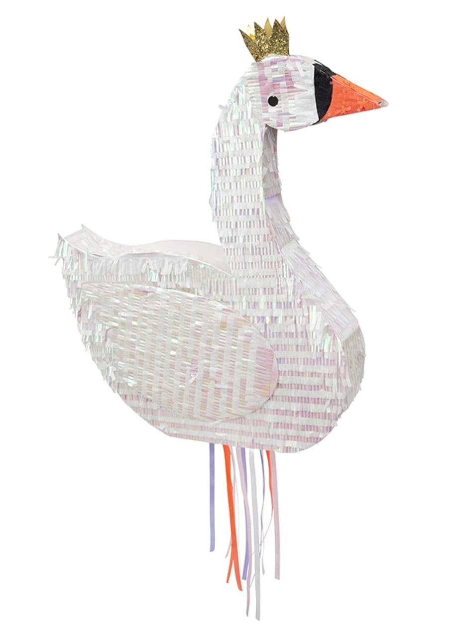 Piękna piniata w kształcie łabędzia, to doskonały element dekoracyjny pokoju małej dziewczynki, ale także świetnia zabawa na przyjęciu urodzinowym.