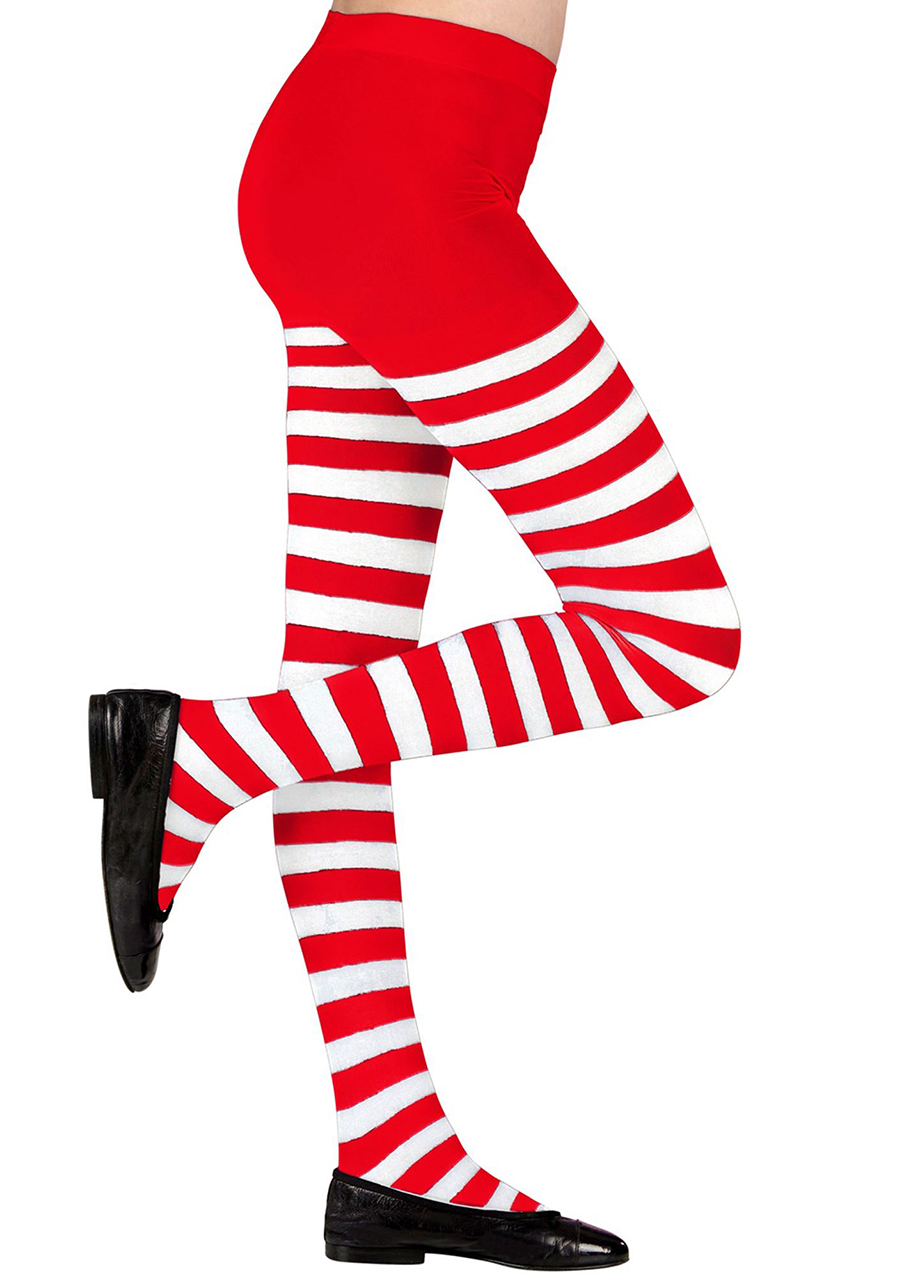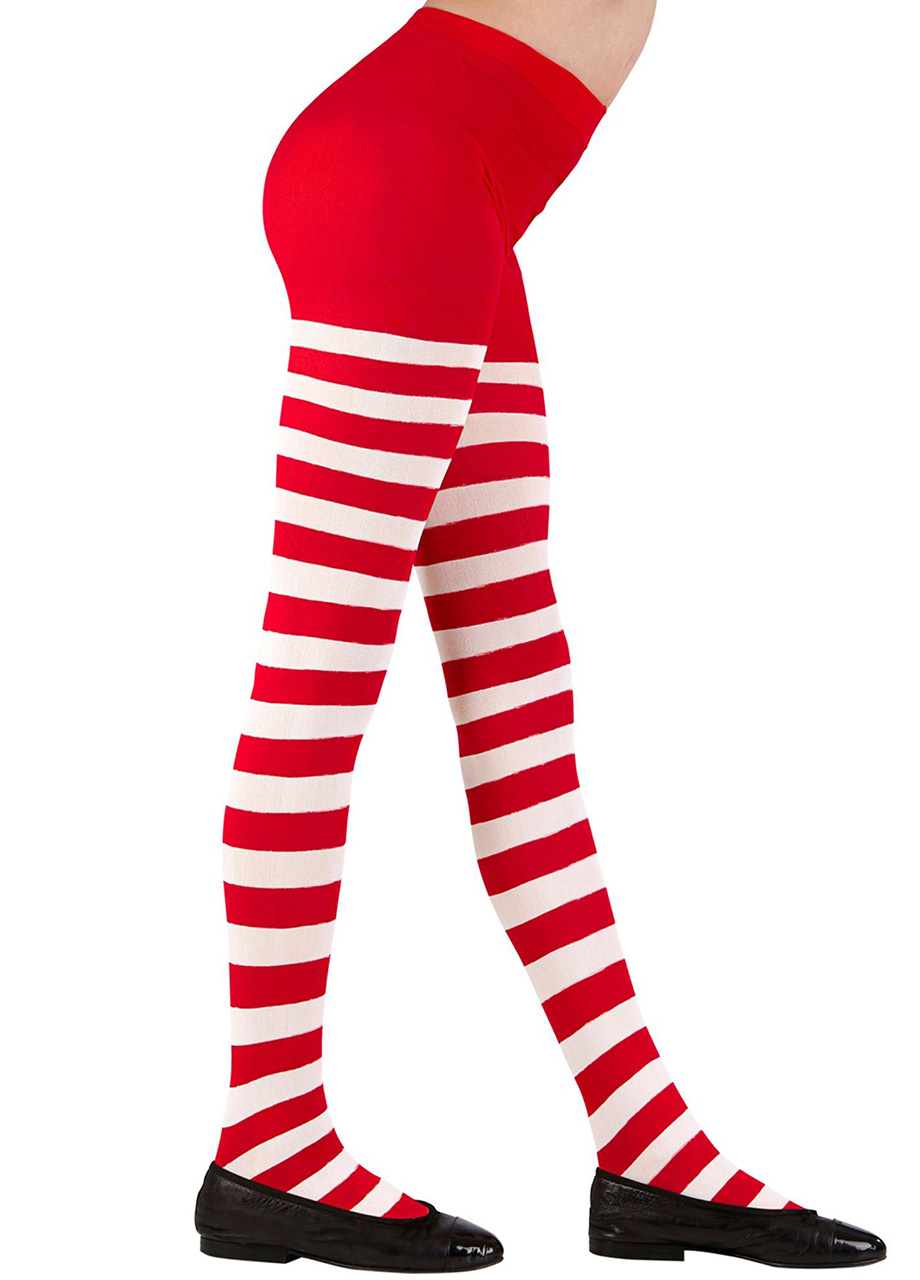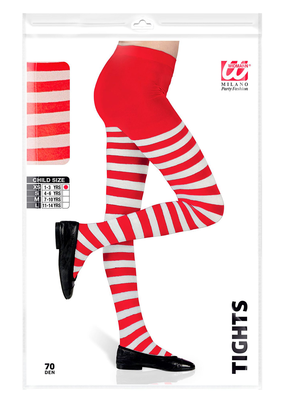 Rajstopy świąteczne dla dziewczynki CZERWONO-BIAŁE PASKI