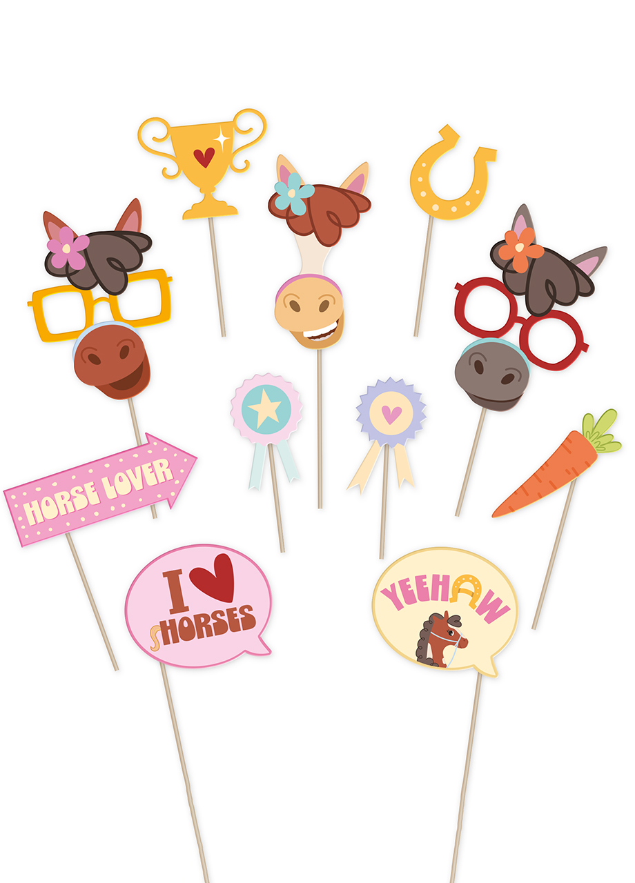Rekwizyty do zdjęć KONIE to fantastyczne akcesoria, które rozbawią każde dziecko na Twojej imprezie! Zestaw zawiera 11 zabawnych elementów w kształcie koni, które będą świetnym dodatkiem do wszelkich dziecięcych zabaw. Dzięki nim każdy maluch poczuje się jak prawdziwy jeździec na wesołej imprezie urodzinowej lub tematycznej.