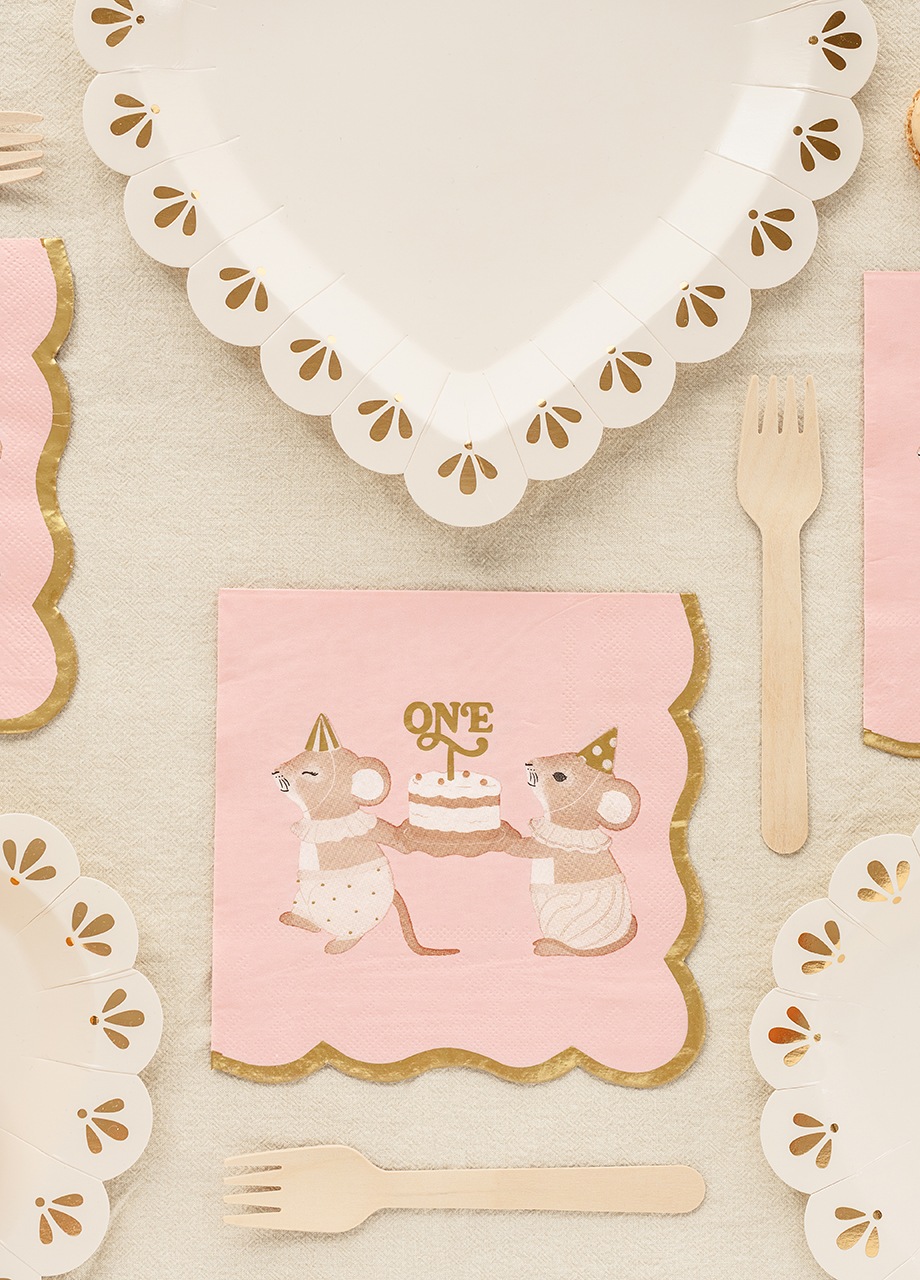 Zestaw balonów na roczek MYSZKI różowe 6 szt.