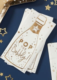 Jednorazowe serwetki ze złotym nadrukiem POP THE BUBBLY (16szt.)
