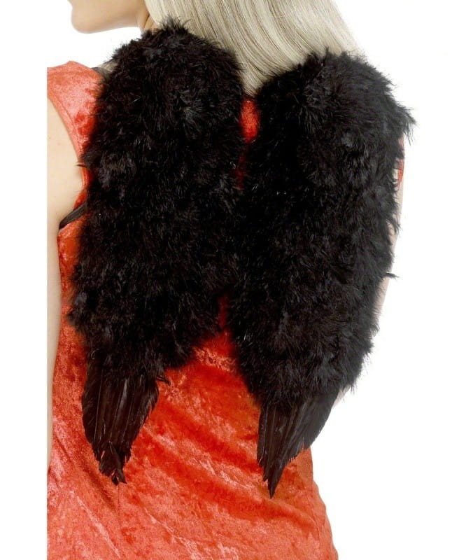 czarne skrzydła z piór, mocowane na ramiączkach z gumki