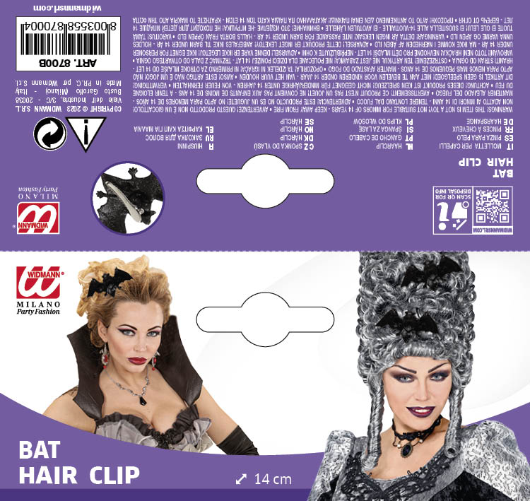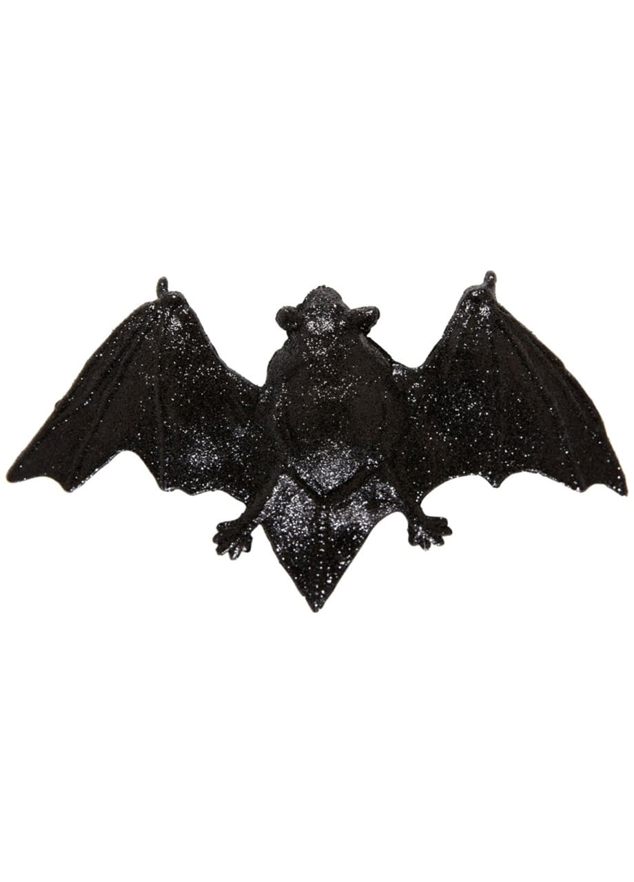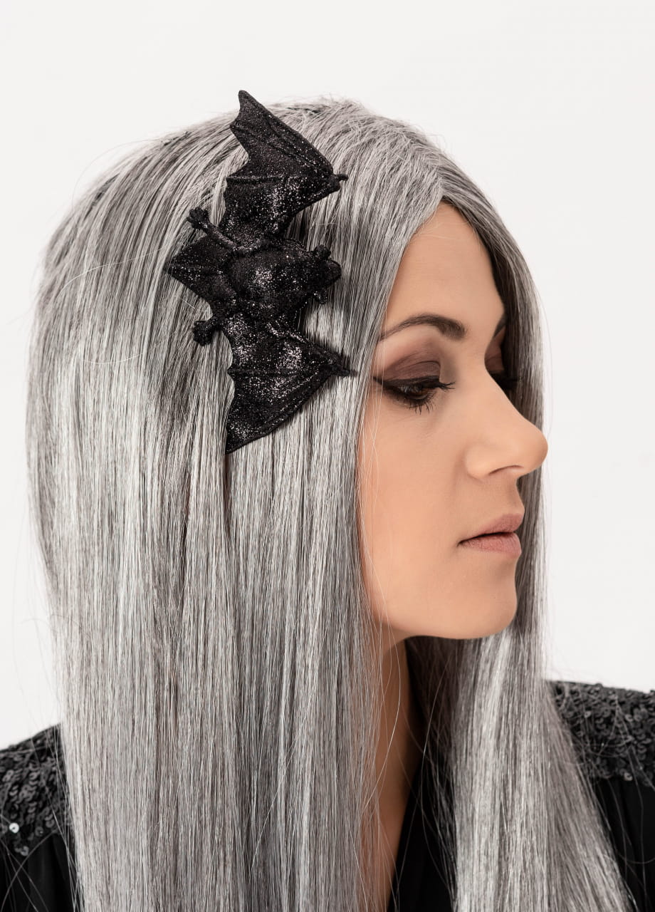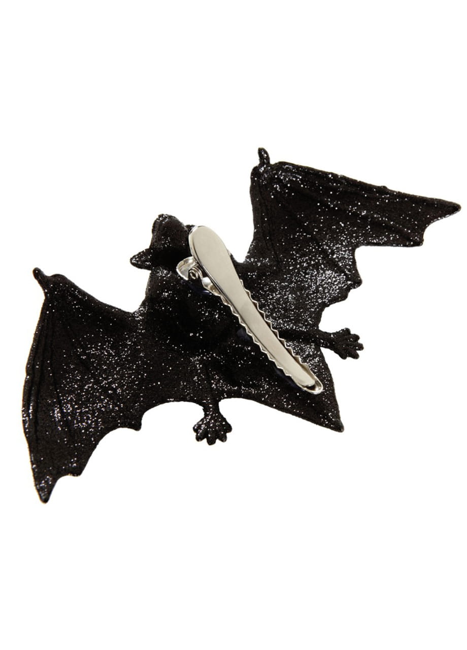 plastikowy, czarny nietoperz pokryty brokatem mocowany na metalowej spince do włosów