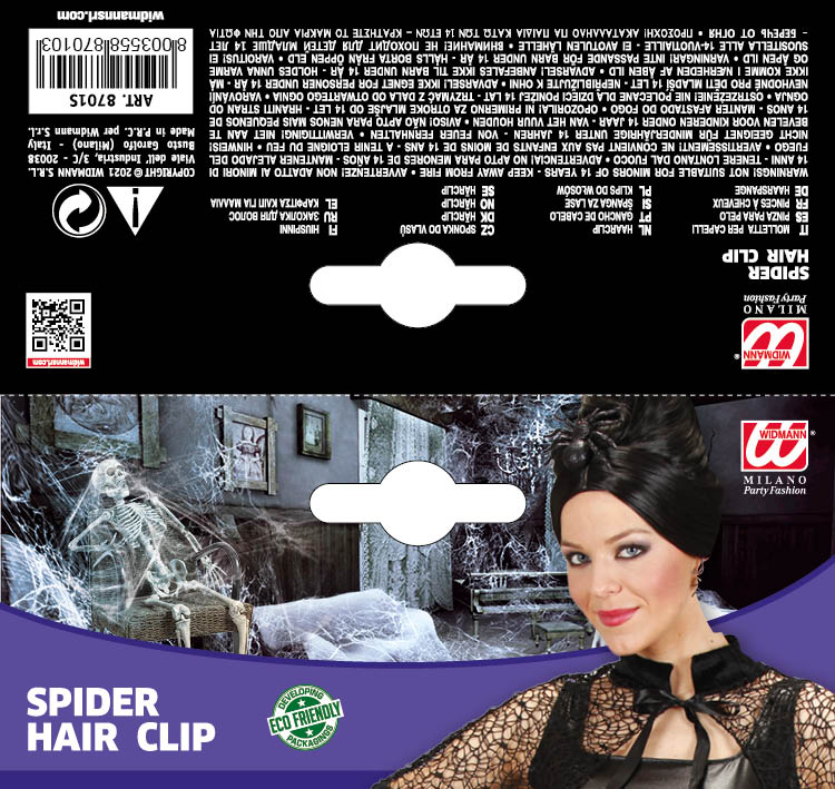Ej! To chyba pająk, i masz go na głowie! Ależ oczywiście, bo to realistyczna ozdoba halloweenowa. Wprowadź ją do swojej stylizacji lub wyeksponuj jako główny element stroju na Halloween. Nasz sztuczny pająk z pewnością zrobi furorę wśród znajomych. Pokażesz się jako osoba, której niestraszne są ludzkie lęki, a obawy przed wielkimi pająkami po prostu Cię nie dotyczą. Zwłaszcza, gdy ostatniego dnia października zamieniasz się w wiedźmę lub wampirzycę.