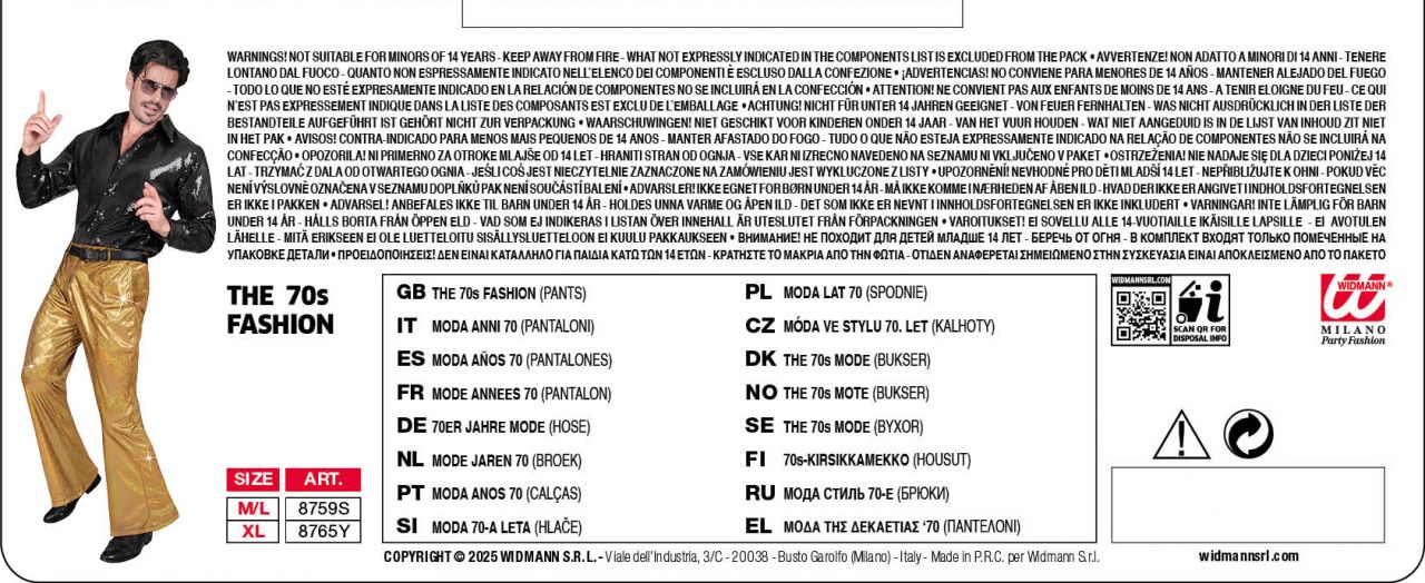 Szukasz elementu stroju, który od razu doda efektu "wow"? Spodnie DZWONY złote - M/L to must-have każdej imprezy w stylu disco lub retro. Świetnie sprawdzą się w duecie z błyszczącą koszulą i dużymi okularami. Ten fason to gwarancja dobrej zabawy i udanych zdjęć.