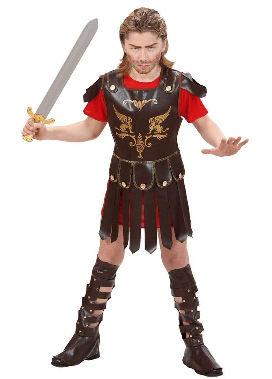 Dziecięcy strój gladiatora to ciekawa propozycja dla chłopców interesujących się dawnymi czasami oraz lubiących filmy i serialne o starożytnym Rzymie. Kostium karnawałowy pozwoli im się wcielić w rolę Spartakusa lub Maximusa, czym z pewnością zabłysną i wzbudzą szacunek innych uczestników przebieranej zabawy.